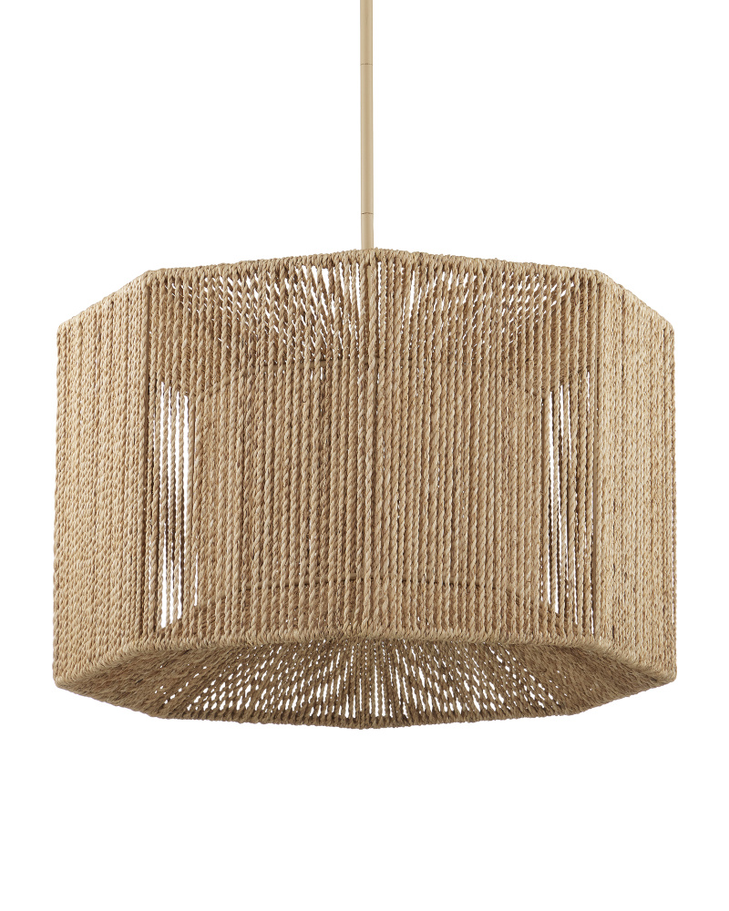 The Mereworth Chandelier has an octagonal wrought iron frame around which natural abaca rope has been painstakingly wrapped to create its shade. The rope chandelier emits a warm glow thanks to the color of the abaca. The material also lends the chandelier a nautical feel that makes it perfect for seaside retreats and oceanfront homes. One of the interesting design attributes about this fixture is how thick the structure is when seen from below. Adjustable from 21.5" to 63.5" with use of included chain/rod kit/cable. If your space calls for a longer drop, additional chain/rods/cable is available for purchase.
