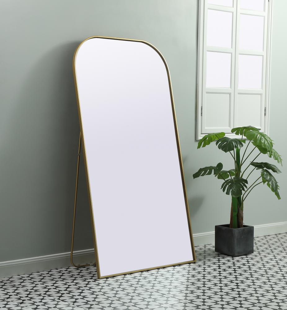 Add a rounded-top full length mirror to your home decor to elevate it to the next level. A full-length mirror is the perfect wall decor choice for any room or living space. This accessory is perfect for adoring full outfits in the full length of your body or providing a full view of yourself in any room, perfect for dressing areas and even bathrooms. Not only does this full-length iron frame large wall mirror provide practical uses, but it also acts as a beautiful addition to any home decor with its sleek, modern design. The mirror can be leaned to the wall, free-standing, or can be installed vertically or horizontally on the wall. Available in three satin finishes: black, brass, and silver.