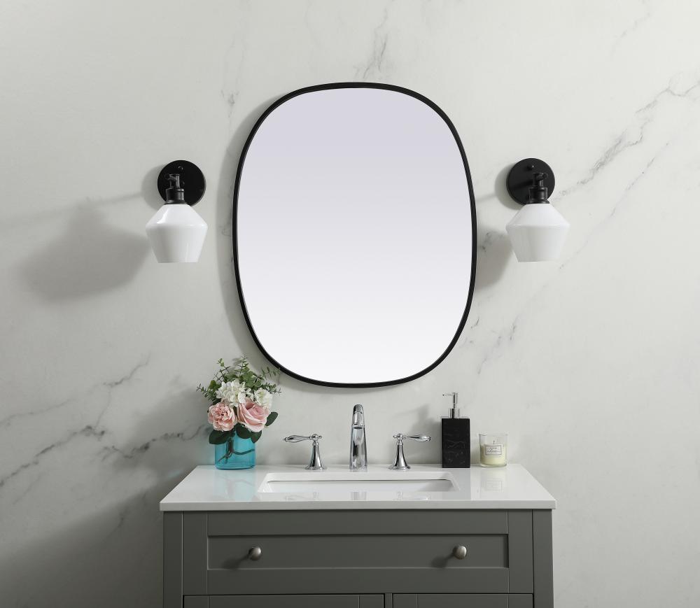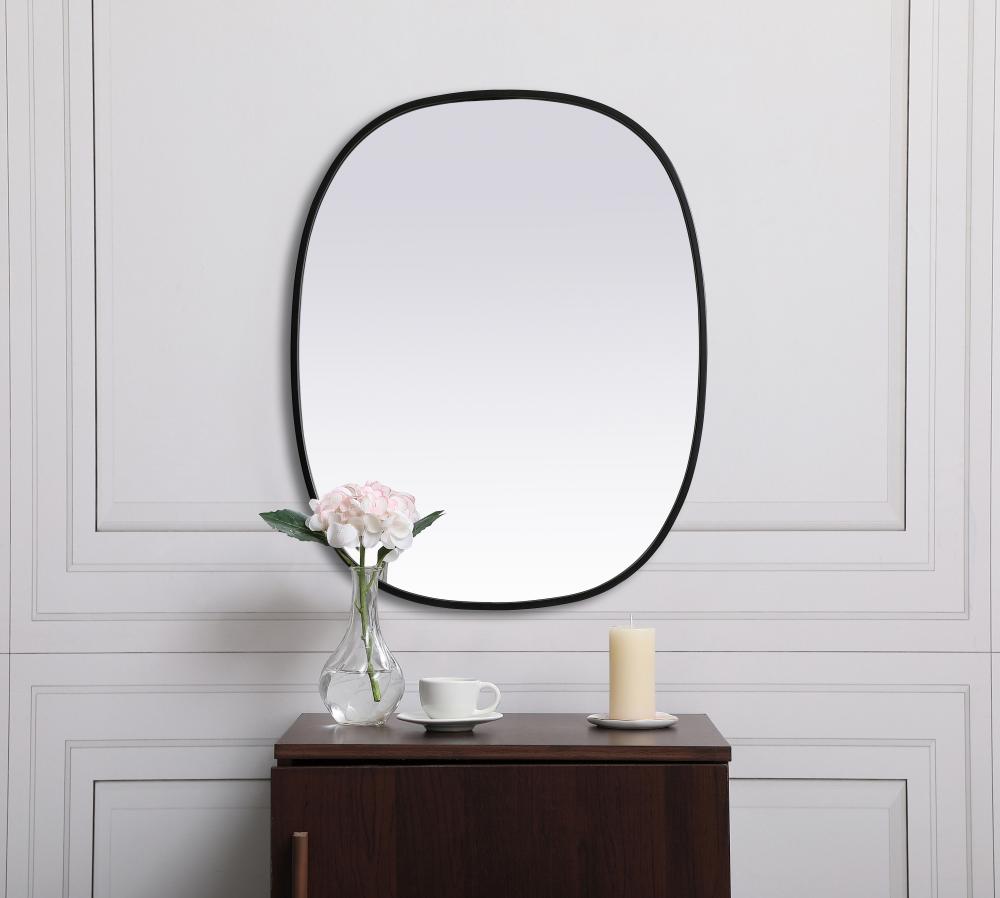 Crafted of metal, this mirror strikes a rounded corner silhouette. Instantly open up any space in your home with this minimalist wall-mounted mirror. Its slender, clean-lined frame sports a classic finish, while the glass mirror within features a flat, for a brilliant reflection, letting the light bounce off to expand your space. Designed in an oblong shape, this metal-frame mirror showcases in the three available satin finishes in black, brass, or silver. Mount this work of art in any room of your choice for added visual impact.