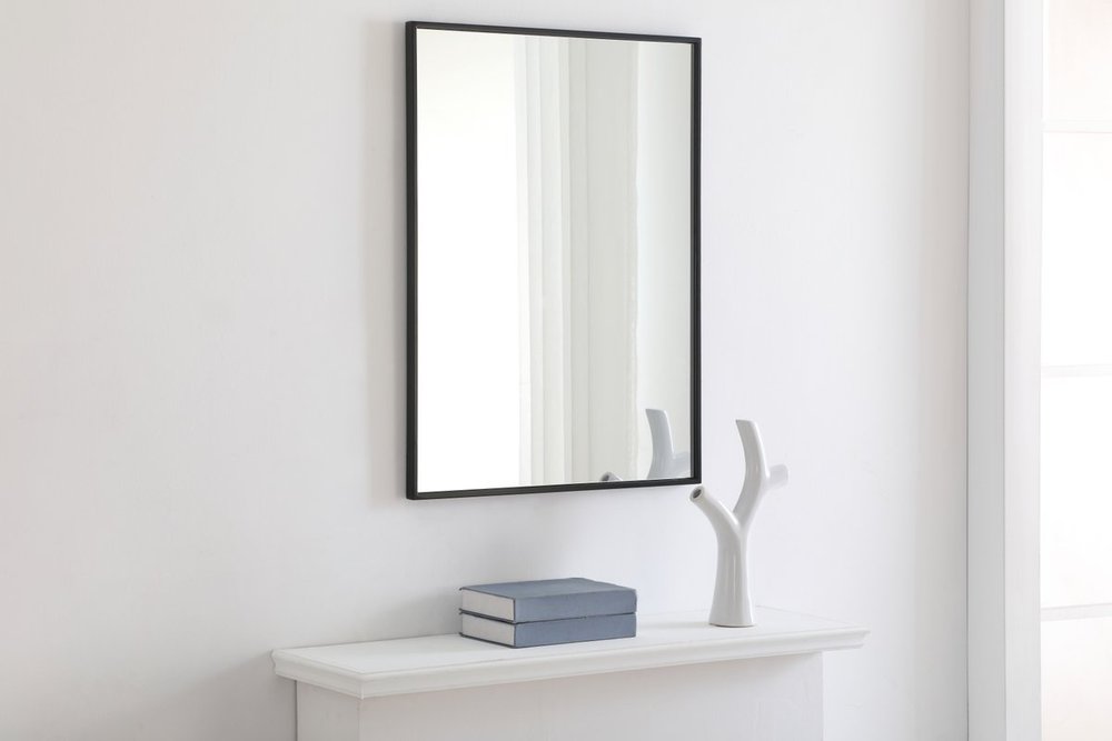 The classic clean and straight lines of this rectangular mirror provide you with a timeless and elegant look to accent any room or hallway in your home or office, featuring an ultra-thin black metal frame in deep profile, refecting a minimalist's design and industrial styling. To ensure your home safety, we uses metal hanger bar that are securely welded to the back of the metal frame. We recommend using suitable heavy duty picture/mirror hooks, selecting the best type of fixing for the particular wall you wish to hang the mirror on, using the appropriate rawl plug if required. Measurement: 24x32, hang vertical or horizontal.