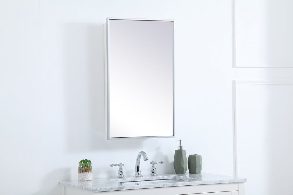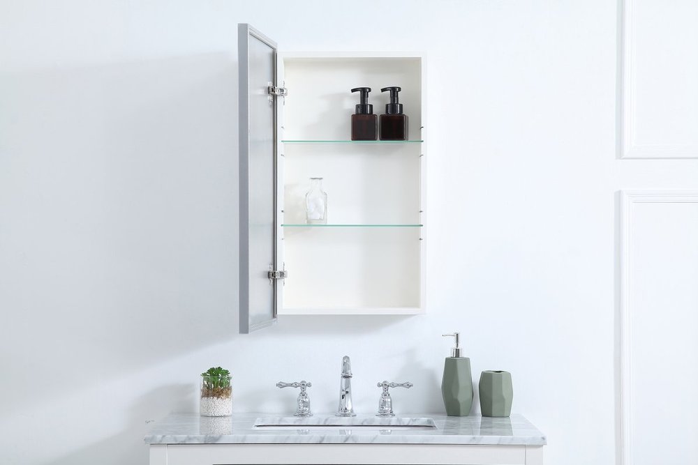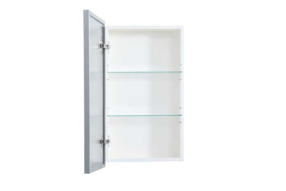 The Wyn medicine cabinet reflects a minimalist's design and trendy styling with its rust-free metal frame mirror. The classic clean and straight lines of this rectangular mirror provide you with a timeless and elegant look in your bathroom, featuring an ultra-thin metal frame in deep profile, reflecting a minimalist's design and industrial styling. Open its door to the left or right to reveal two adjustable glass shelves for storing your toiletries. There are four metal keyhole hangers installed on the back of the mirror for easy installation, mounting hardware is not included. Constructed with a manufactured wood frame for exceptional strength and durability.