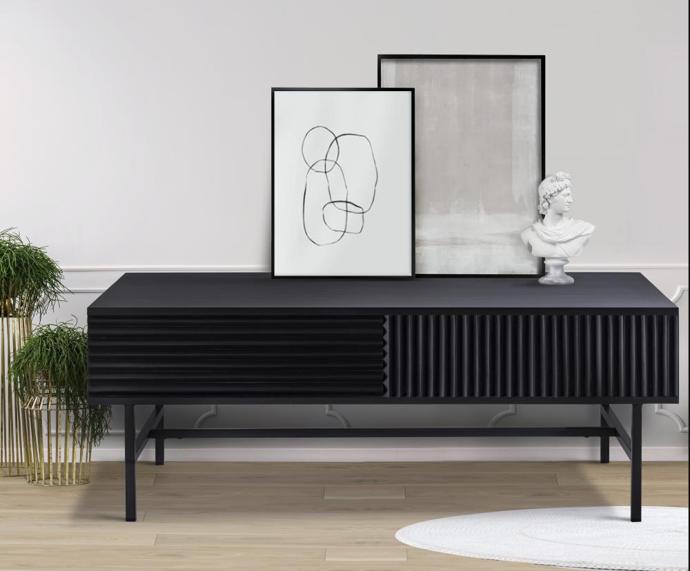 Modern and Sophisticated Design: The MEZ Black Finished Coffee Table features a sleek silhouette with a unique ribbed design on the sides, adding texture and depth to any room.