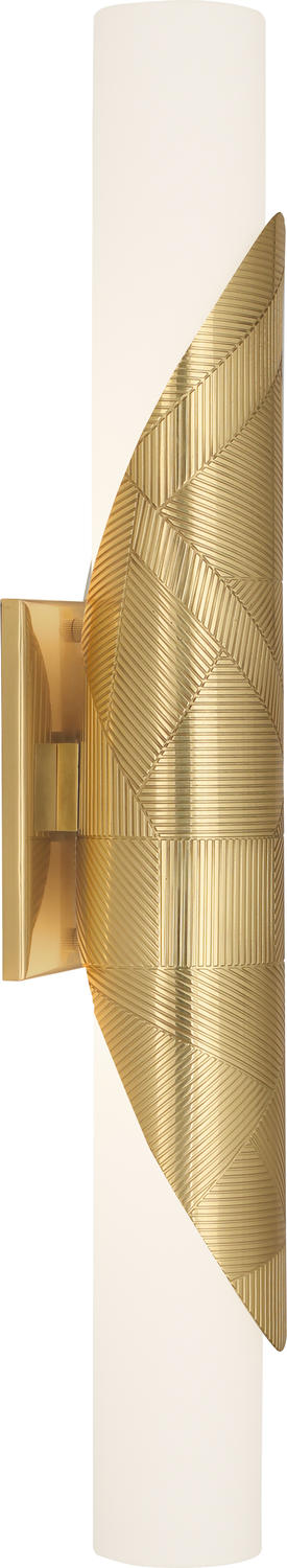 Modern Brass Michael Berman Brut Wall Sconce with Frosted Cased White Glass Shades