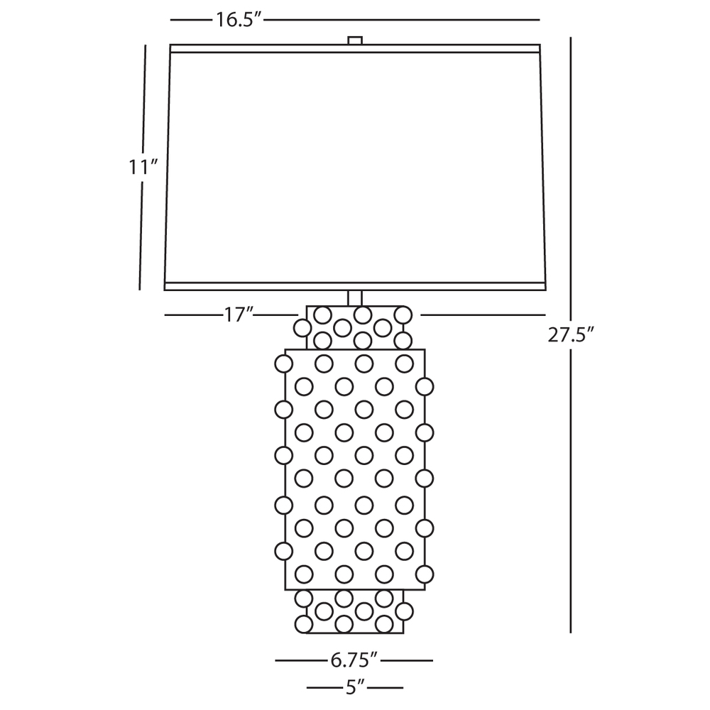 Midnight Blue Glazed Textured Ceramic Dolly Table Lamp with Fondine Fabric Shade - Our Dolly table lamps are a great choice for adding visual appeal with a raised circle pattern adorning the ceramic body. You cant go wrong lighting your space with this modern twist on a classic shape.