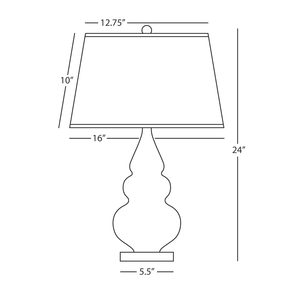 Our Triple Gourd collection features a simple but gracefully curving silhouette. Available in a wide array of vibrant colors and several different base finishes. - Midnight Blue Glazed Ceramic with Lucite Base Small Triple Gourd Accent Lamp with Pearl Dupioni Fabric Shade