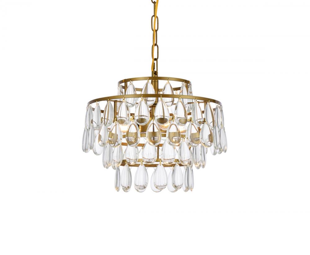 Tiers of clear smooth almond shaped crystals reflect the soft glow of candelabra bulbs