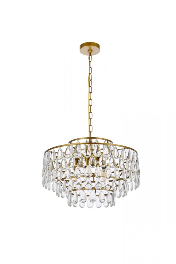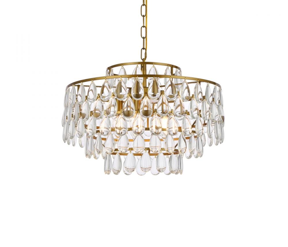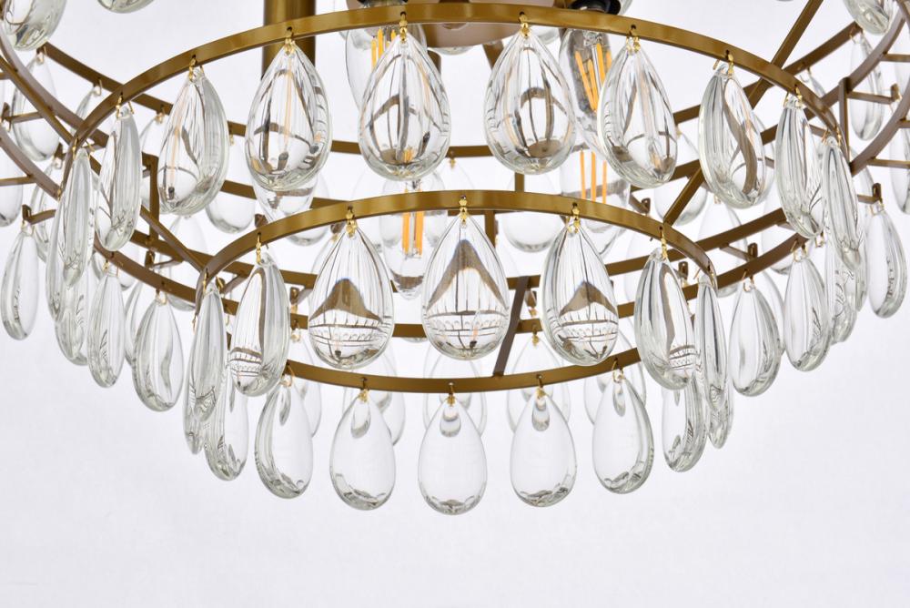Tiers of clear smooth almond shaped crystals reflect the soft glow of candelabra bulbs