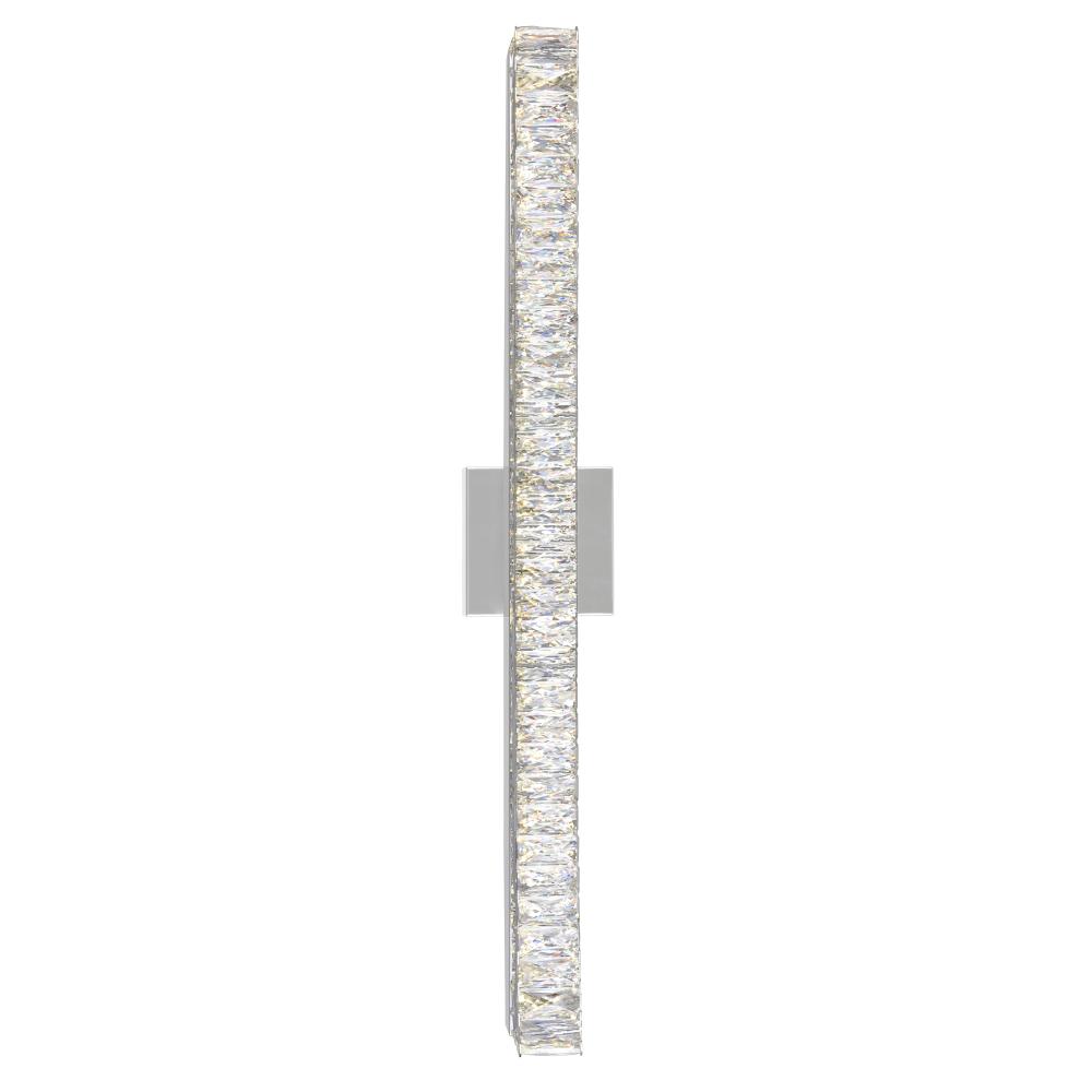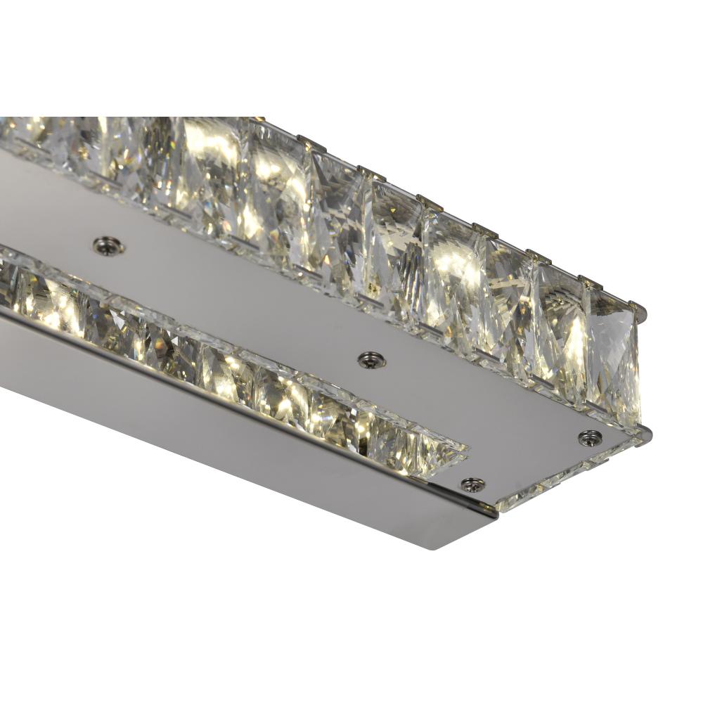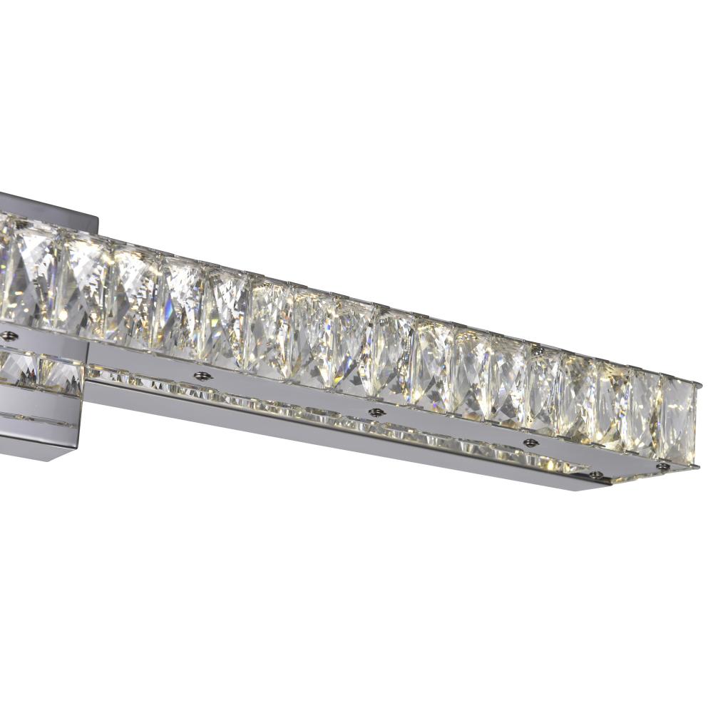 Give your bathroom a luxurious feel or brighten a dark hallway with the sleek Milan 32-Inch LED Vanity Light. This modern fixture features a row of sparkling crystals that soften the glow of its integrated LED lights, while the chrome-finished hardware adds a polished, high-end look. Perfect for contemporary and traditional spaces alike, the Milan sconce provides warm, inviting light while enhancing your decor. Easy to install and energy-efficient, it combines style and function effortlessly.