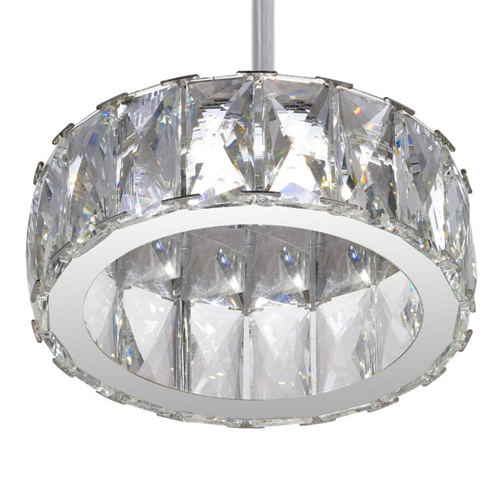 Give your space a refined update with the Milan LED Down Mini Pendant. This 6-inch circular pendant features a sleek chrome canopy and rod, supporting a crystal-lined halo that brings brilliance and style to any room. The integrated LED light offers long-lasting illumination while adding a sophisticated touch. Ideal for kitchens, hallways, or dining areas, this pendant brings a polished, high-end look to your home.