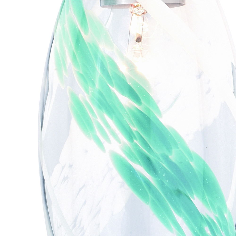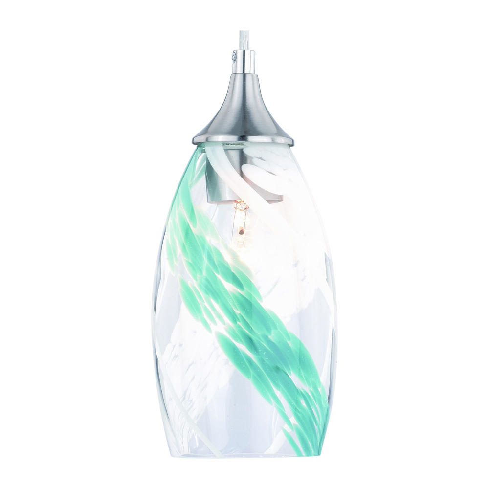 Beauty and pizzazz come together in this stunning addition to the Milano art glass collection. Artfully designed with blue and white painterly swirl, this ceiling mount pendant light features a satin nickel finish. Combine that with a vintage Edison style filament bulb to complete the look. Install this mini pendant individually or in a group; ideal for kitchens, dining areas, or bar areas.