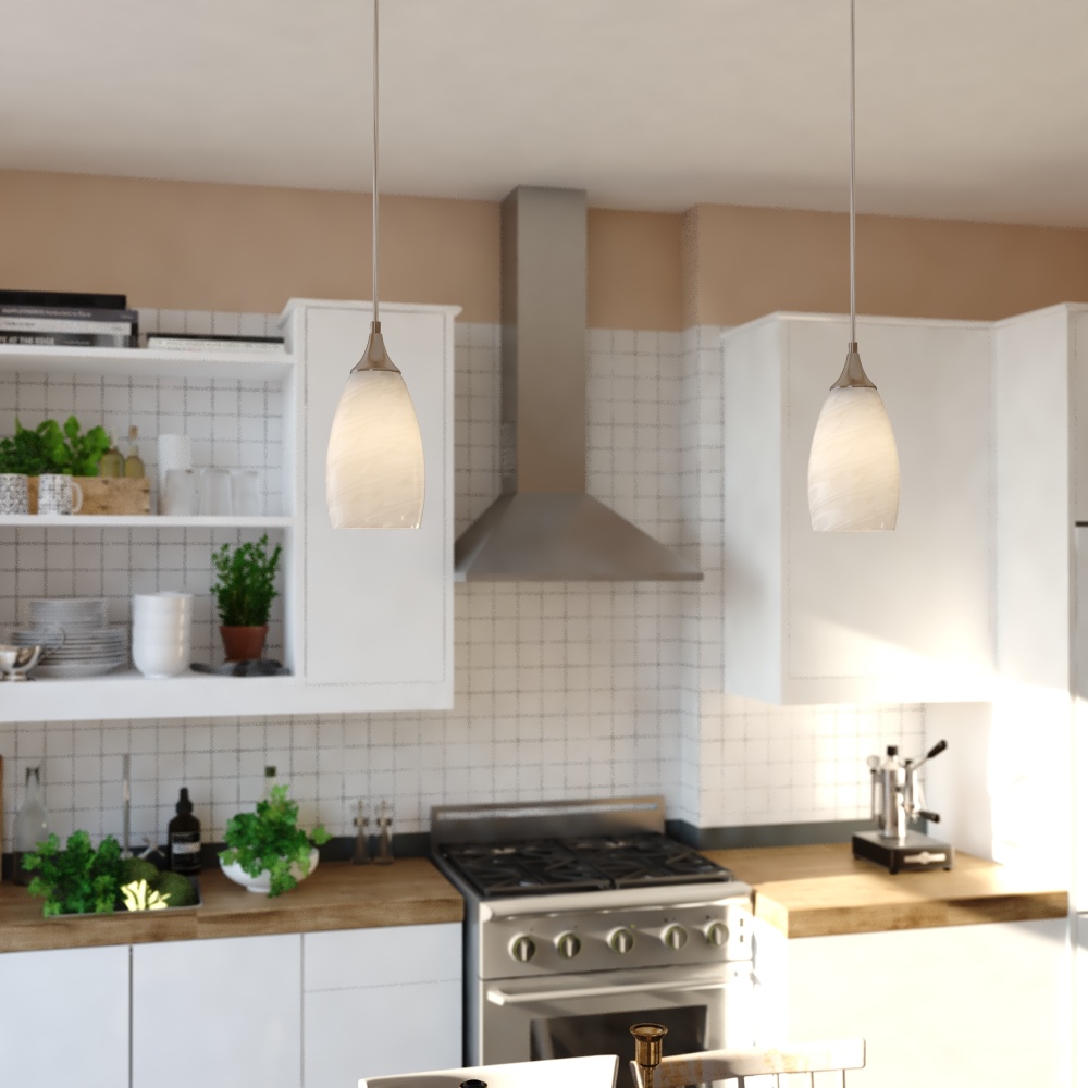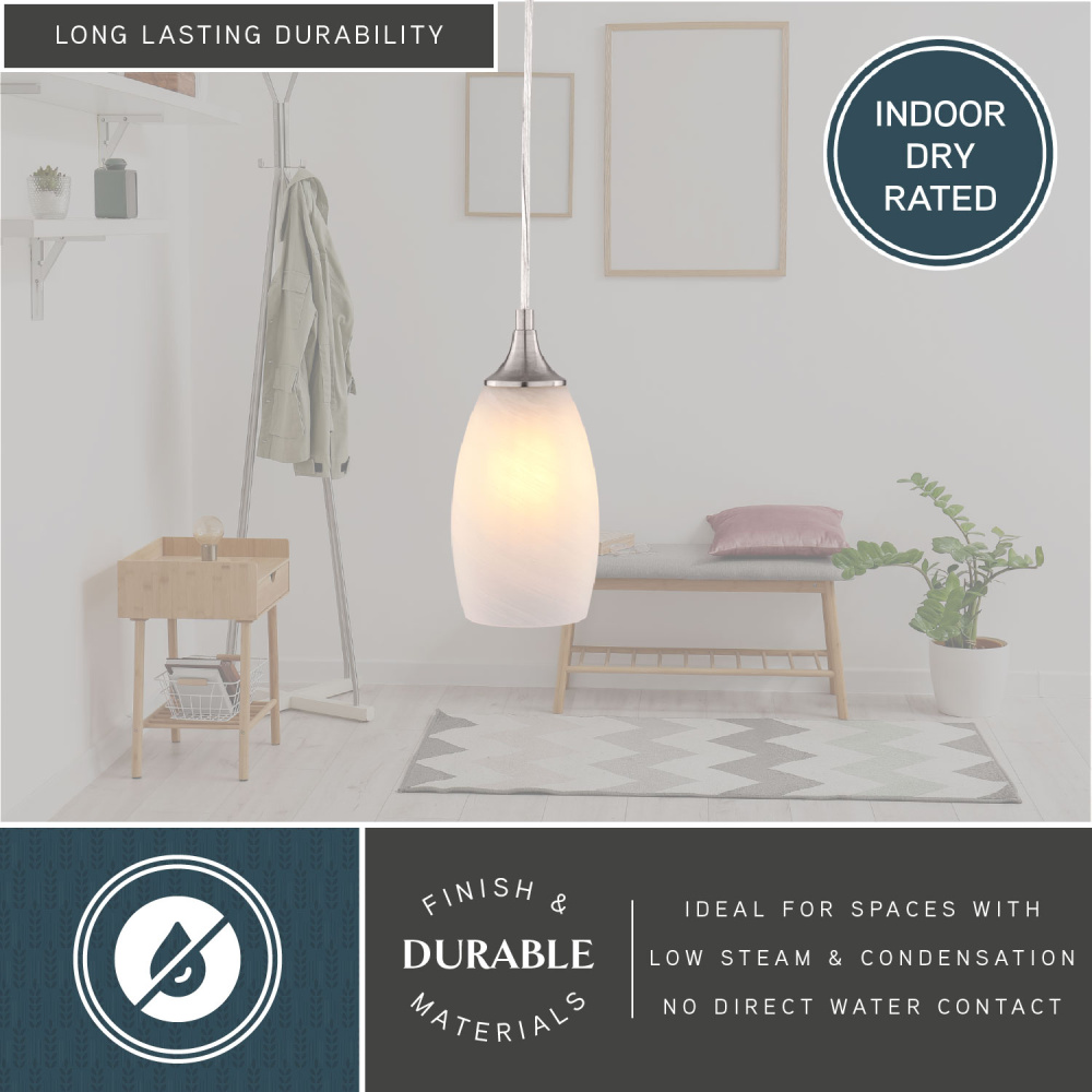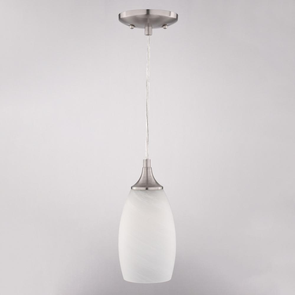 Milano 4.75-in W 1 Light Mini Pendant Alabaster Glass Satin Nickel