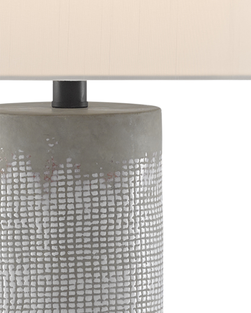 Plumes of indigo and cloud-colored blues rise up the body of our Milner Blue Table Lamp made of porcelain. This is one of the Currey & Company offerings that proves the talent of our finish artisans who love to experiment with handmade treatments on a variety of materials. Providing this lamp just the right touch of cohesion is the gray birch silk drum shade that echoes the light tones in the lamp’s body. We also offer the Milner in caramel hues.