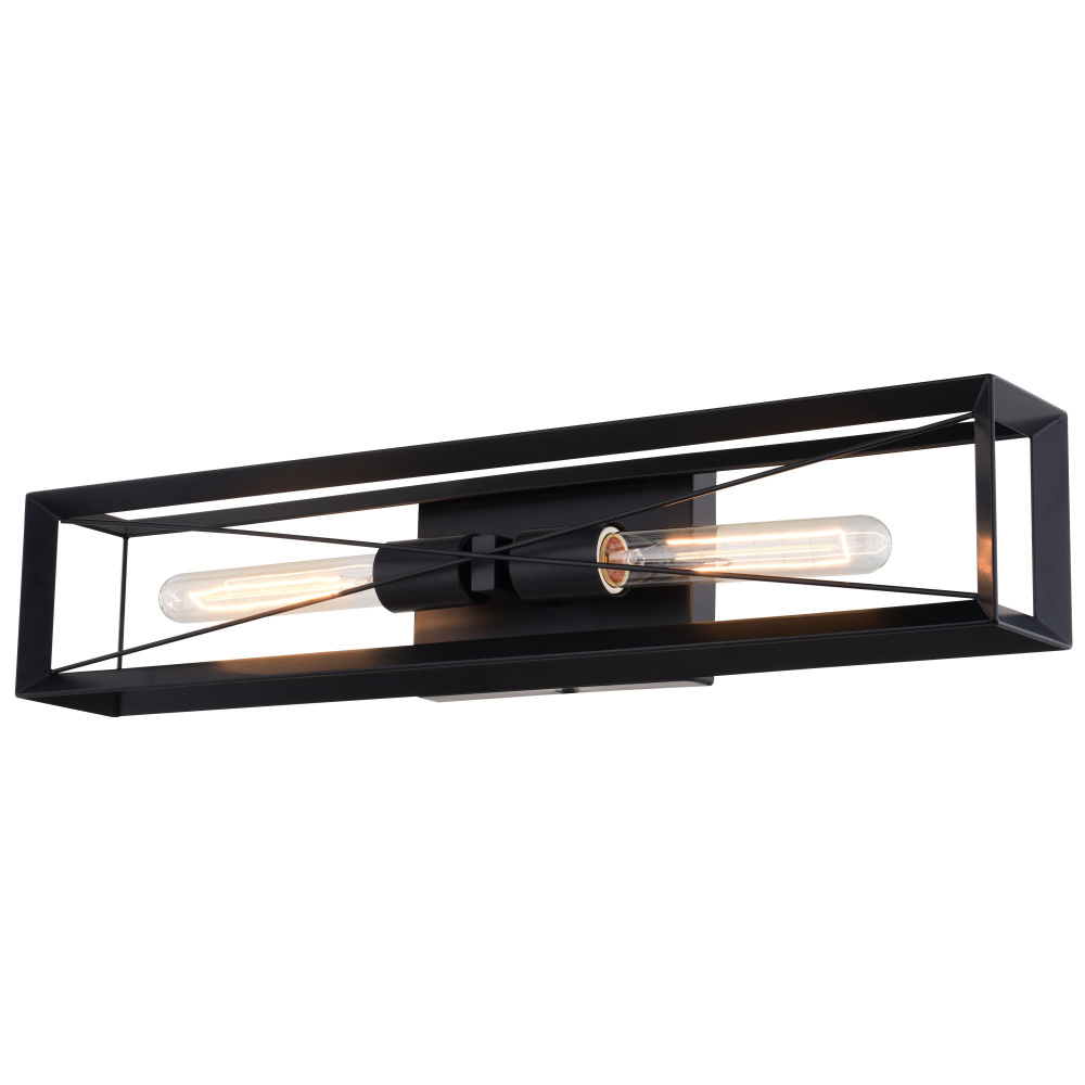 Upgrade your bathroom lighting with the stylish and functional Milton 2-Light Vanity Light. Its unique crisscross wire design adds a touch of industrial flair, while the matte black finish complements any color palette. The damp location rating ensures safe and reliable use in bathrooms and other moisture-prone areas. Enjoy the flexibility of vertical or horizontal installation to create the perfect lighting setup for your space. The Millon Vanity Light combines form and function seamlessly.