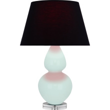 Mint Glazed Ceramic with Lucite Base Double Gourd Table Lamp with Bright Blue Fabric Shade with Gray Lining - Our Double Gourd collection features a simple but gracefully curving silhouette. Available in a wide array of vibrant colors and several different base finishes.