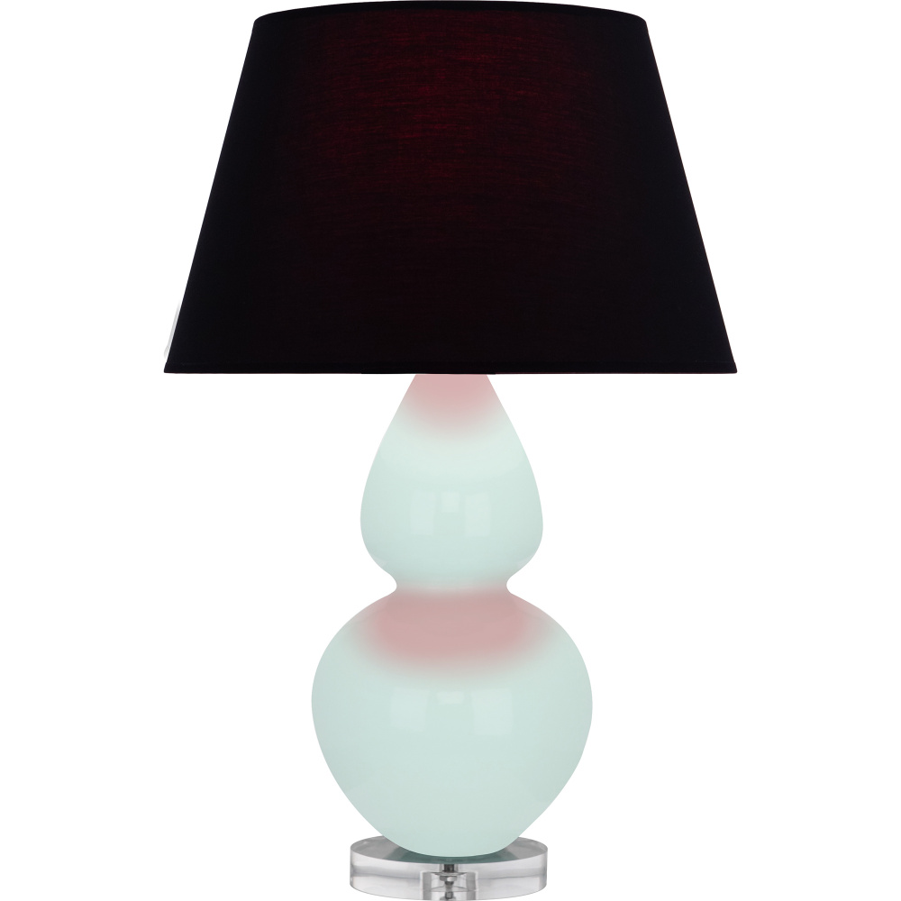 Mint Glazed Ceramic with Lucite Base Double Gourd Table Lamp with Ink Black Fabric Shade with Rose Red Lining - Our Double Gourd collection features a simple but gracefully curving silhouette. Available in a wide array of vibrant colors and several different base finishes.