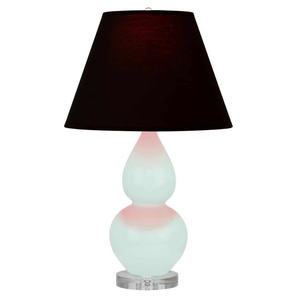 Mint Glazed Ceramic with Lucite Base Small Double Gourd Accent Lamp with Ink Fabric Shade with Rose Red Lining - Our Double Gourd collection features a simple but gracefully curving silhouette. Available in a wide array of vibrant colors and several different base finishes.