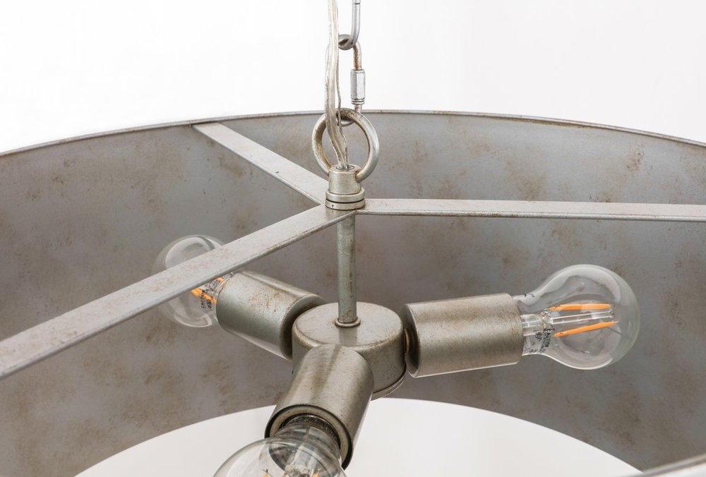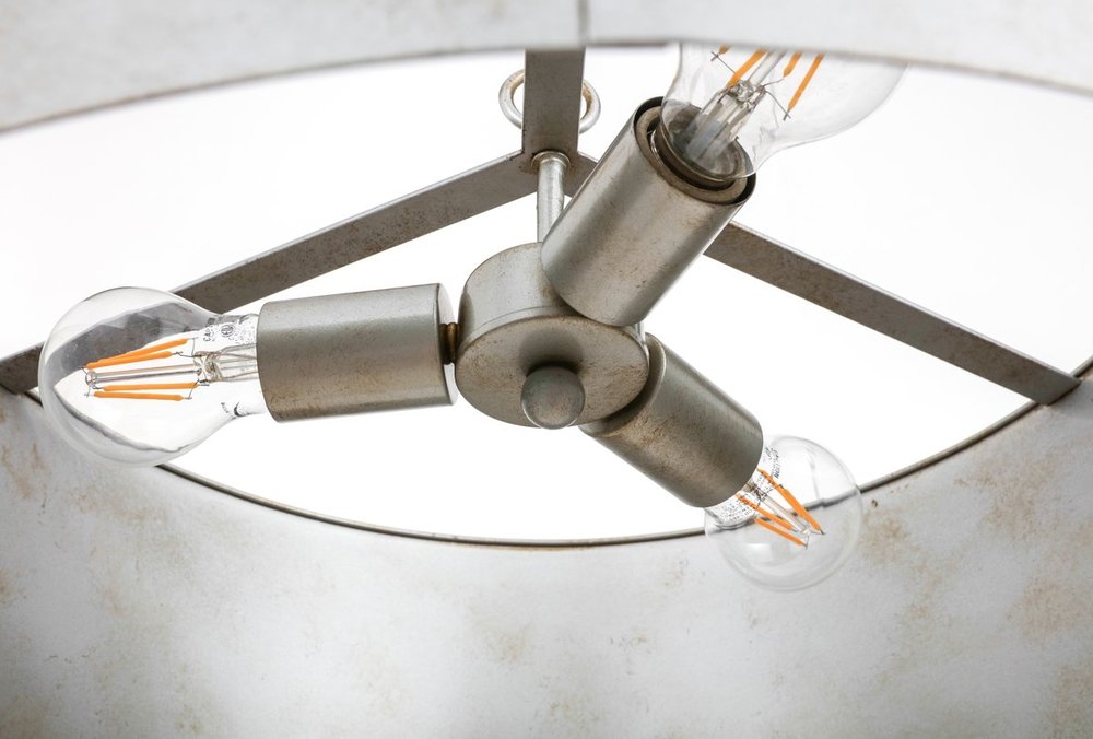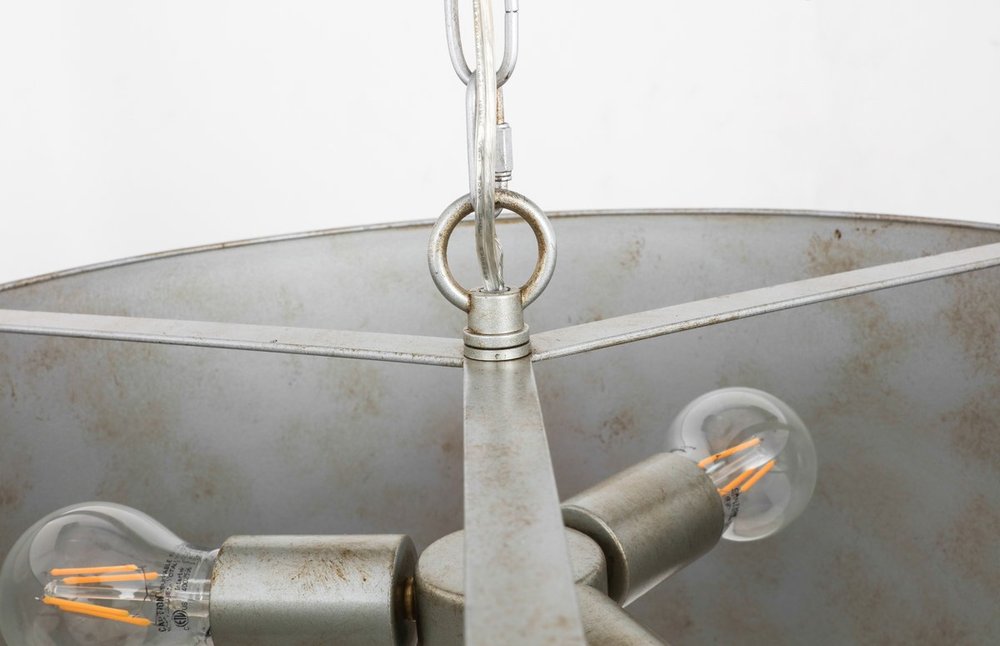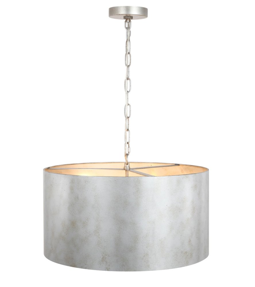 The Miro Collection industrial style light shines boldly and is a sturdy addition to your home. Its round shade guides the light to shine to the room below, and the vintageSilver finish will complement the color palette of the room, providing ample light anywhere, whether it is your dining room, bar, or work room (light bulbs not included).
