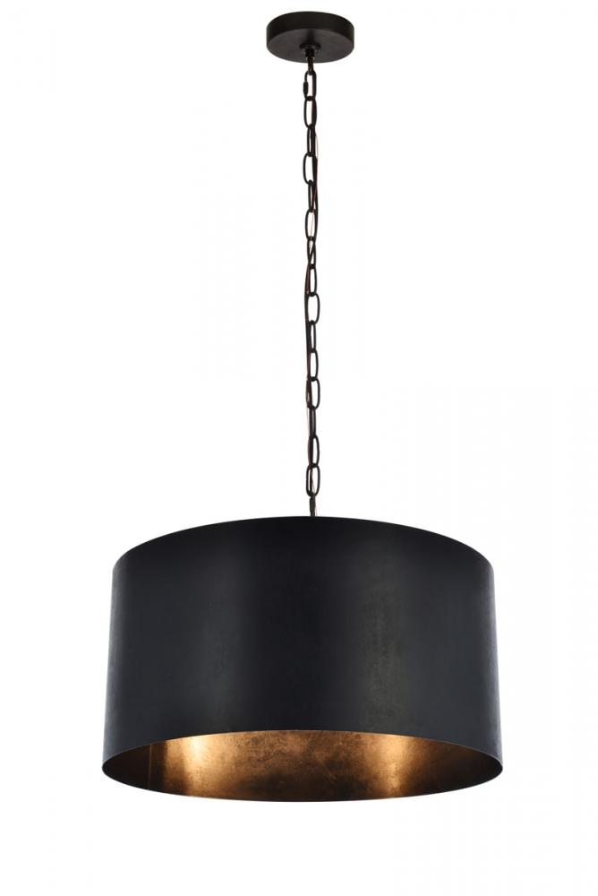 The raw power and audacious simplicity of Miro collection hanging fixtures will lend a commanding presence to your home – especially in a kitchen, living room, office, or studio space. The bold, textured cylindrical shade hangs from a rugged chain and disk-shaped mounting plate. Three exposed bulbs (Not included) hang from a hidden internal crosspiece and create a curious effect on the color of the interior. Available in a vintage-Black or manual-brass finish with two size options.