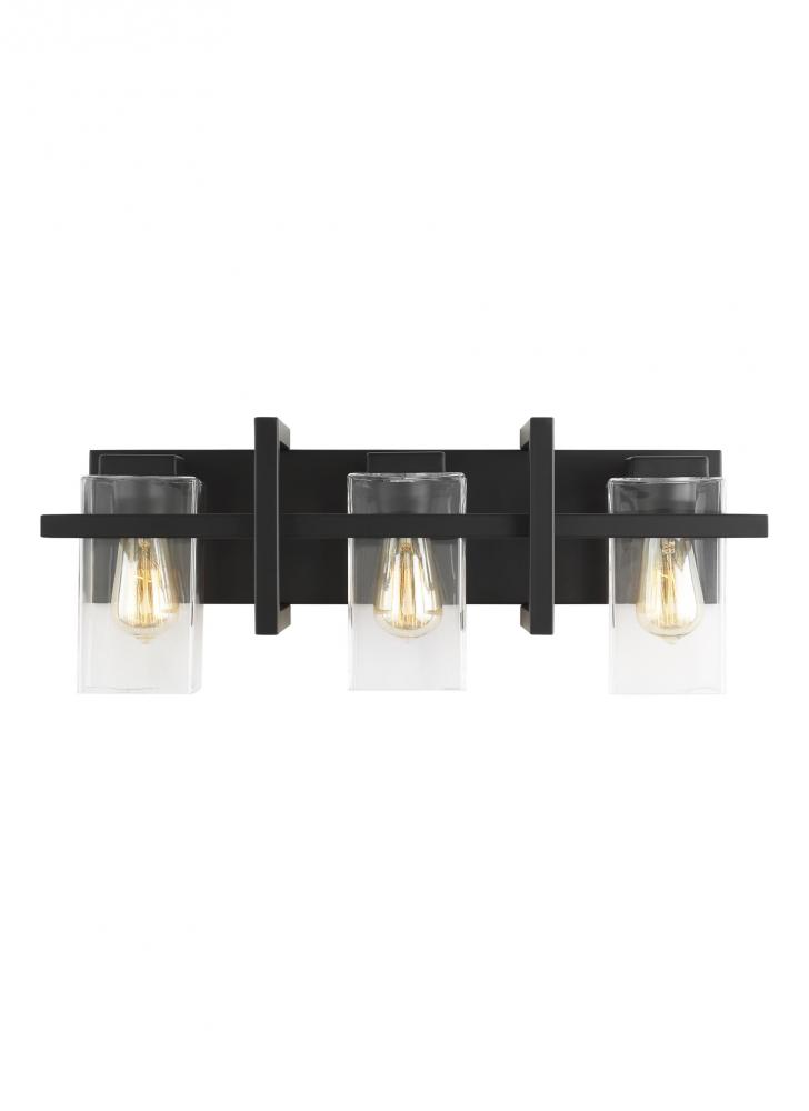 Mitte transitional 3-light indoor dimmable bath vanity wall sconce in midnight black finish with cle