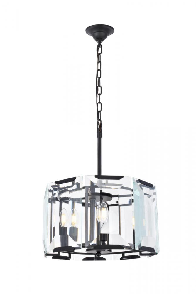 Monaco 4 light Flat Black (Matte) Pendant Clear Glass Crystal