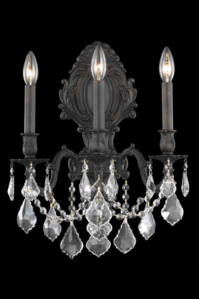 9603 Monarch Collection Wall Sconce W14in H18in E9.5in Lt:3 Dark Bronze Finish (Royal Cut Golden Shadow Crystals)