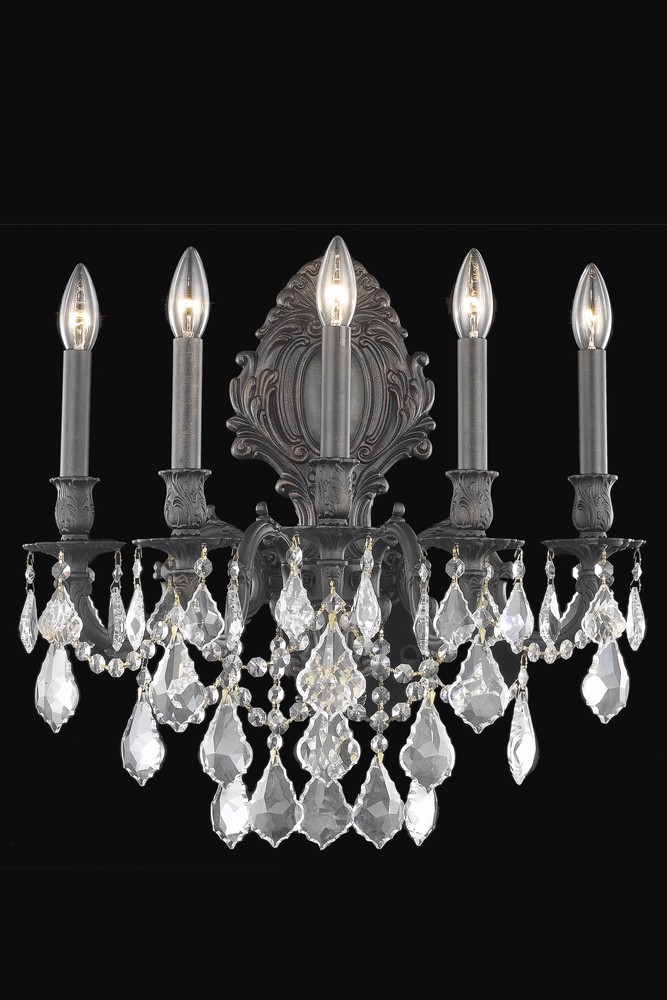 9605 Monarch Collection Wall Sconce W21in H24in E11in Lt:5 Dark Bronze Finish (Royal Cut Golden Shadow Crystals)