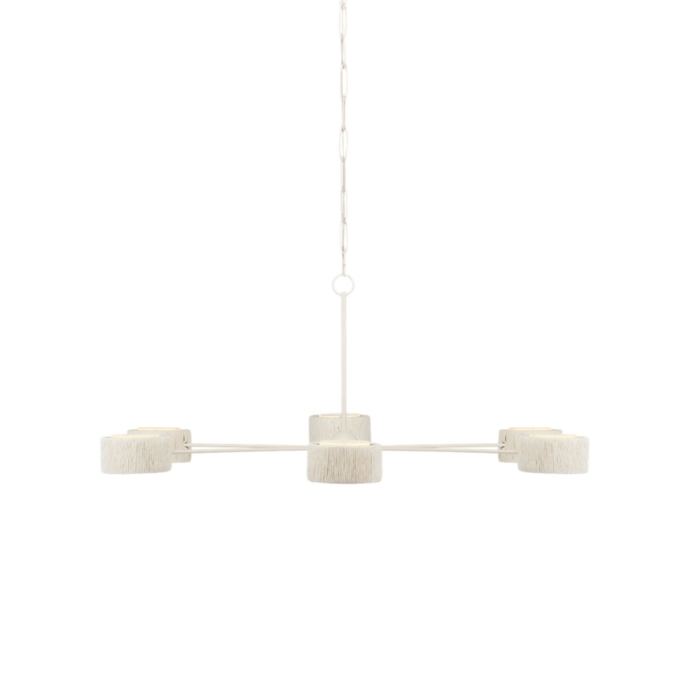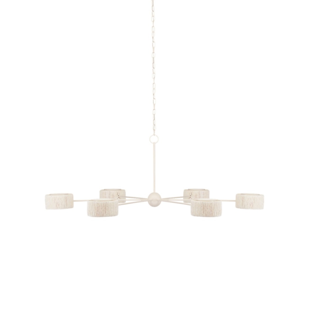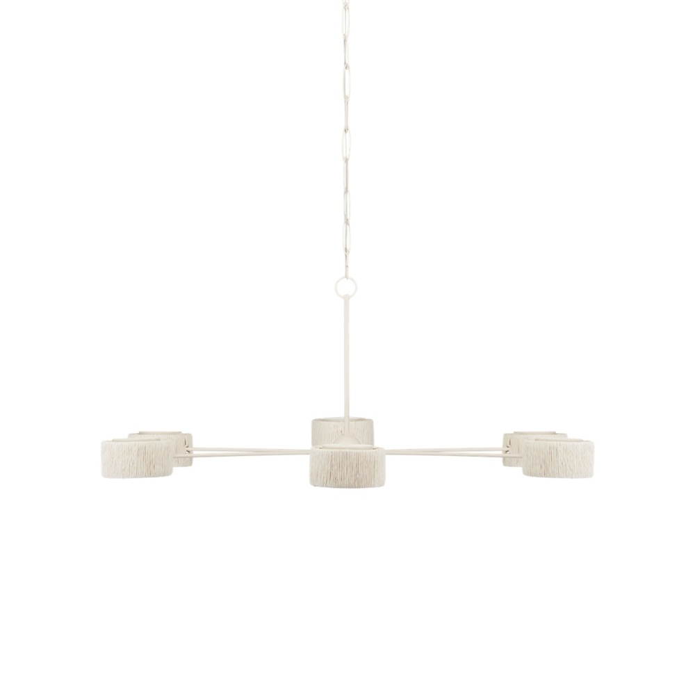 With shades made from recycled paper that has been twisted like braided hair, the Monreale Chandelier has a frame made of round tubing that telescopes out from a central cog. The paper is painted white, and the wrought iron frame has a vanilla finish that contributes to the lightness of this ivory chandelier. The shades are fitted with acrylic diffusers on the bottoms, and there are no transformers because the fixture has integrated LED technology. Adjustable from 24" to 93" with use of included chain/rod kit/cable. If your space calls for a longer drop, additional chain/rods/cable is available for purchase.