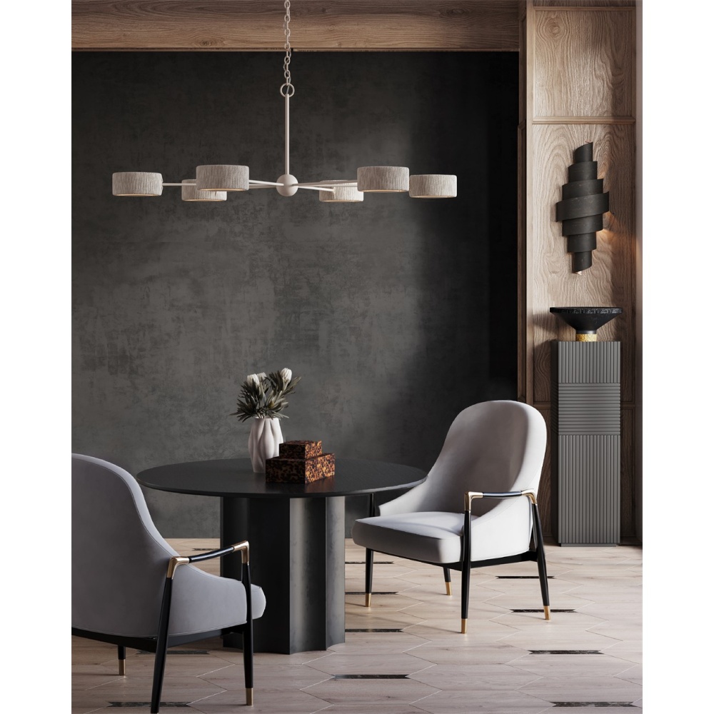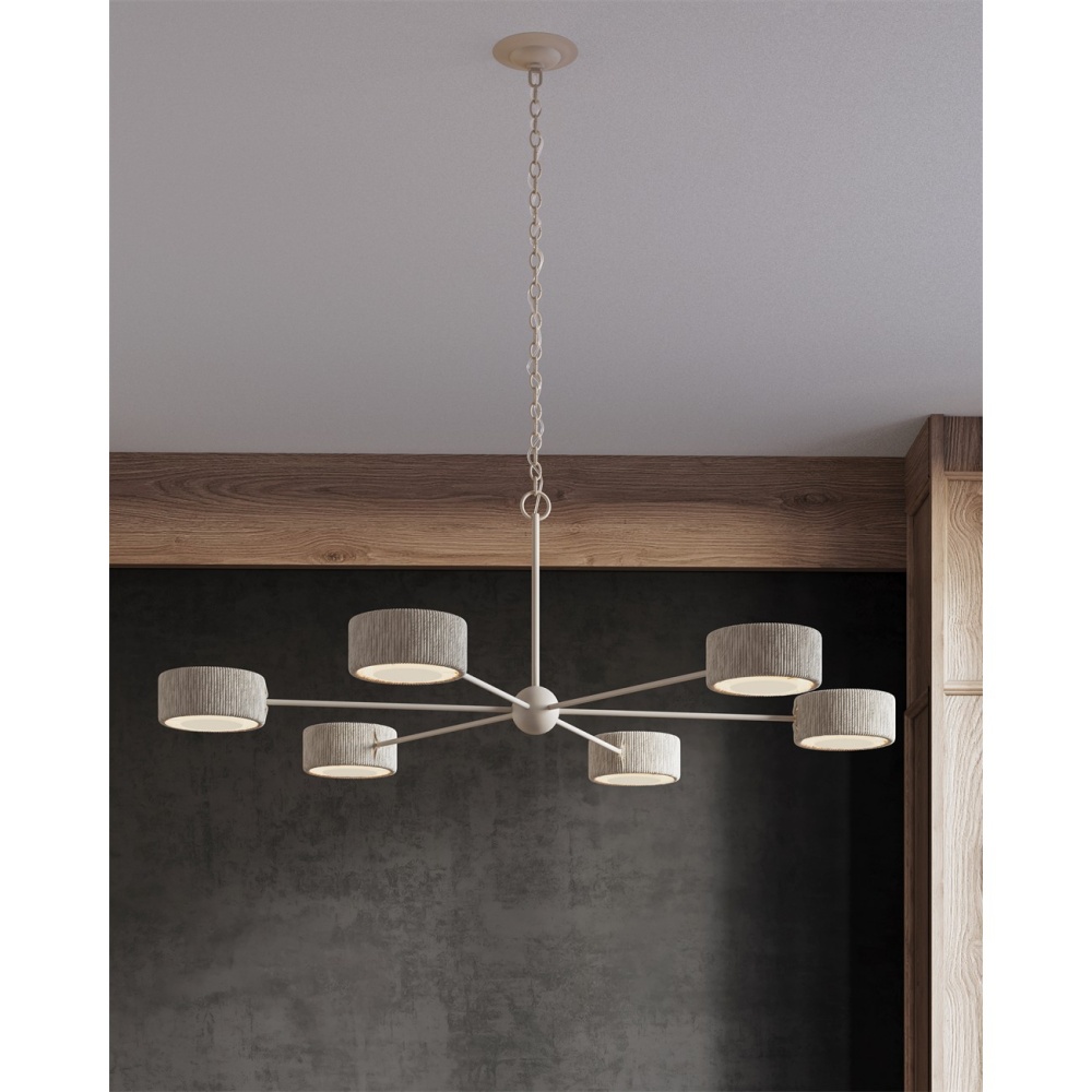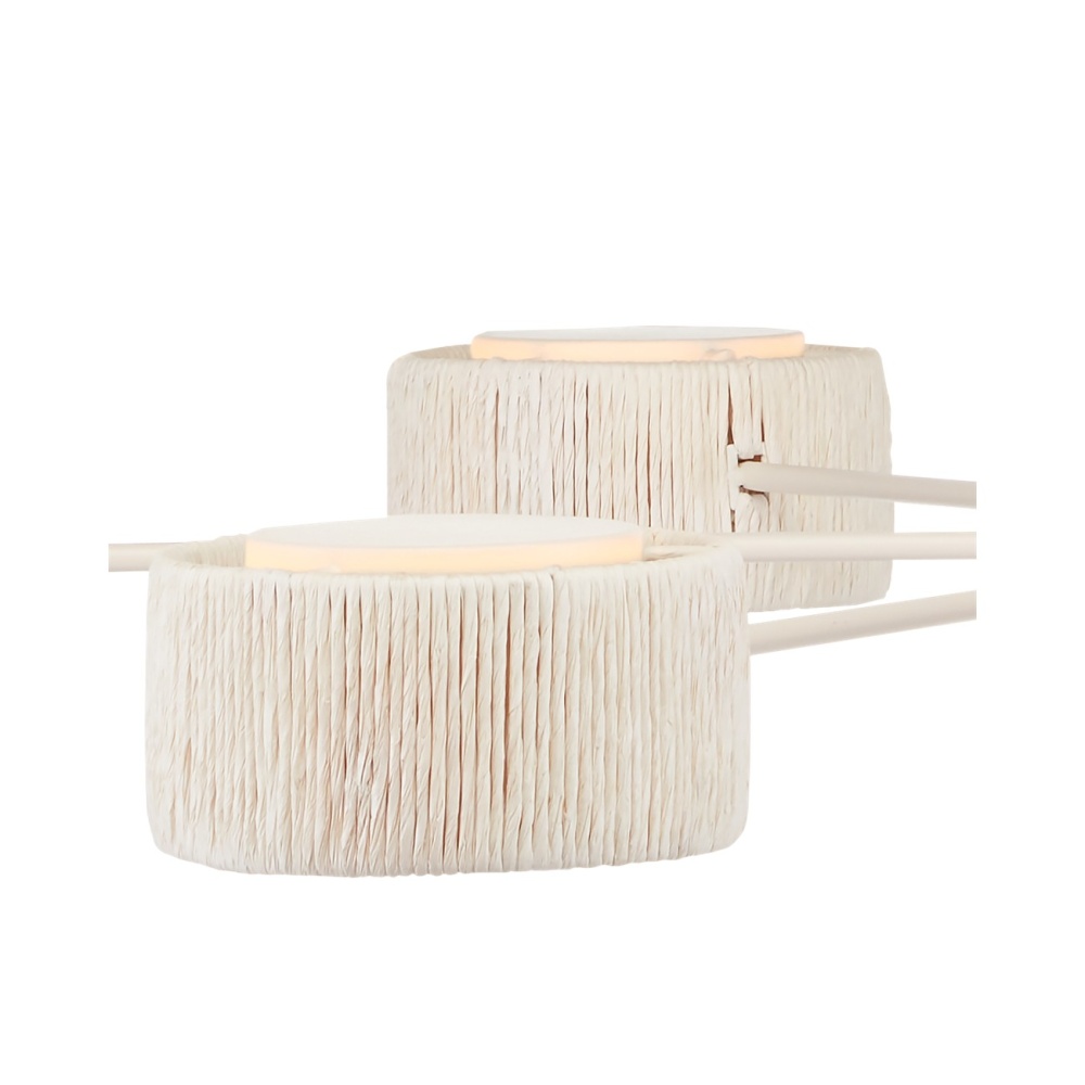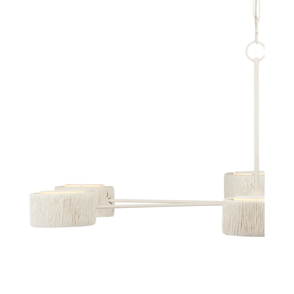 With shades made from recycled paper that has been twisted like braided hair, the Monreale Chandelier has a frame made of round tubing that telescopes out from a central cog. The paper is painted white, and the wrought iron frame has a vanilla finish that contributes to the lightness of this ivory chandelier. The shades are fitted with acrylic diffusers on the bottoms, and there are no transformers because the fixture has integrated LED technology. Adjustable from 24" to 93" with use of included chain/rod kit/cable. If your space calls for a longer drop, additional chain/rods/cable is available for purchase.