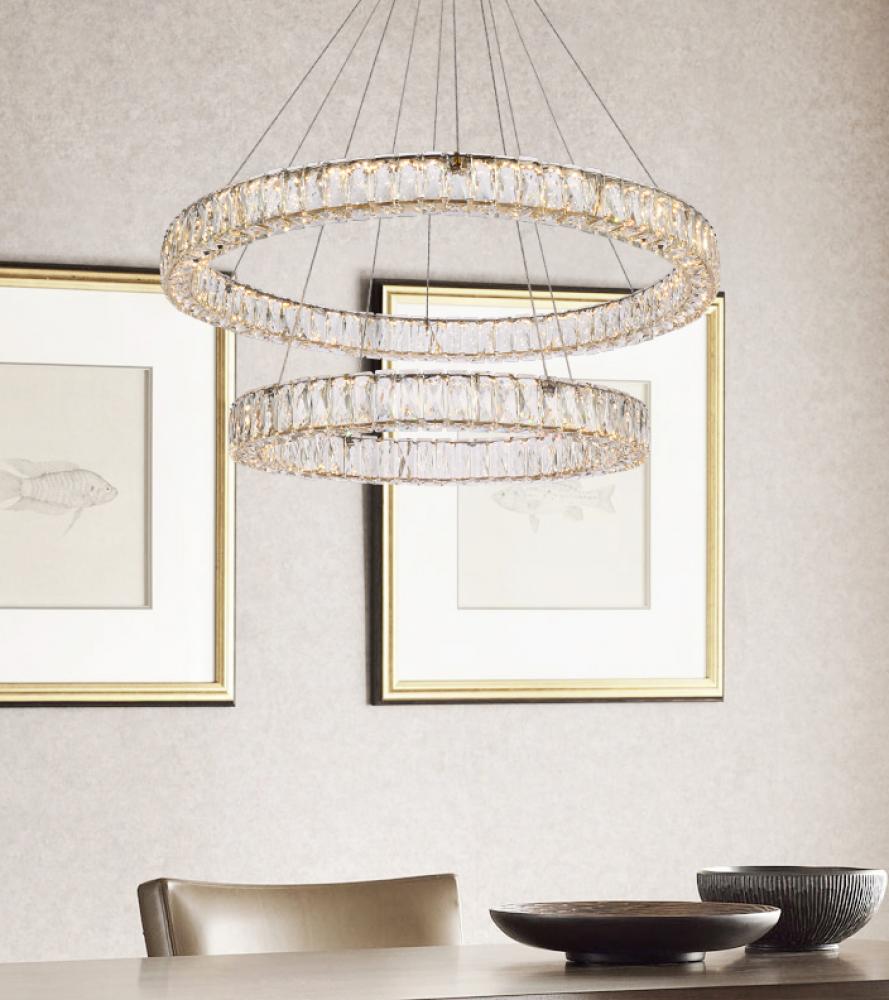 Elegant 3503G28G - Monroe 28 inch LED double ring chandelier in gold