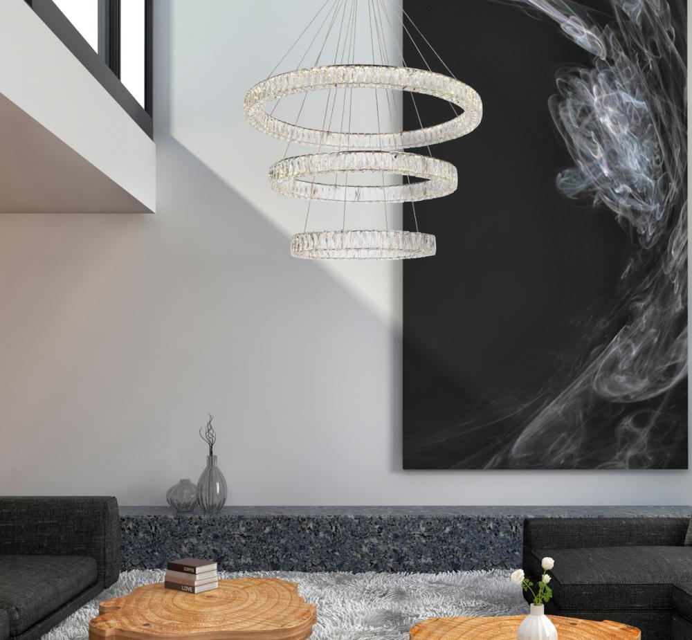 Monroe 41 inch LED triple ring chandelier in chrome