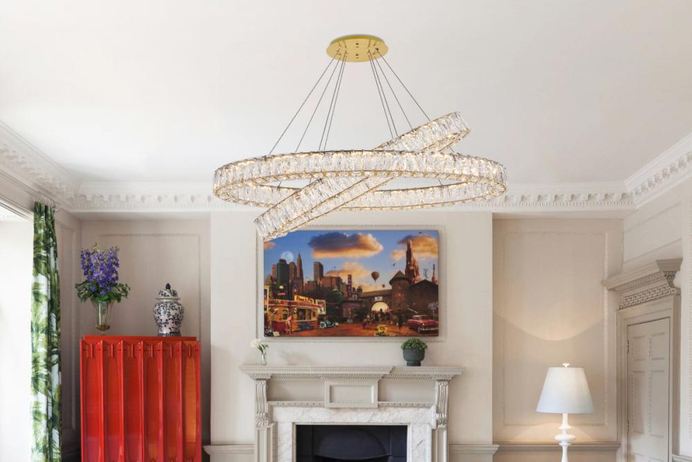 Diamonds are a girl’s best friend, and sparkling Monroe collection hanging fixtures take Marilyn’s famous lines to heart … for women and men alike. A minimal stainless-steel frame in a smooth gold finish becomes dazzling when it is covered entirely with rectangular and square spectacularly faceted royal-cut clear crystals. The oblong design hangs from almost invisible wires with brilliant integrated LED shining unseen from within. Stunning when placed in a dining room, kitchen, living room, or bedroom.
