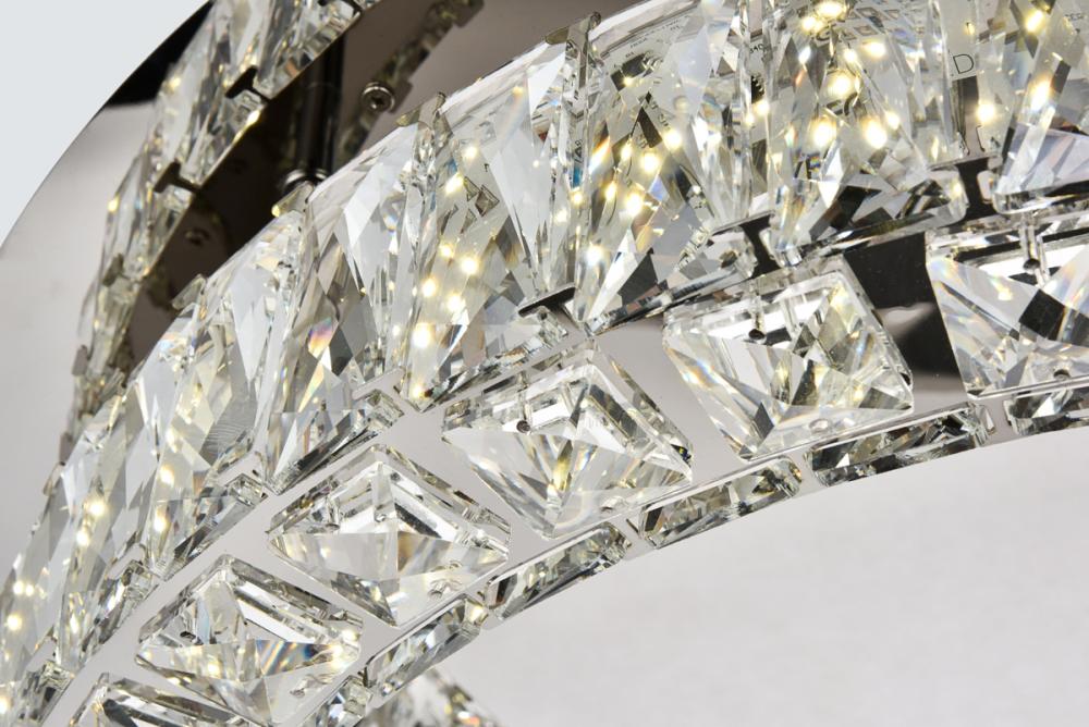 Diamonds are a girl’s best friend, and sparkling Monroe collection flush-mount lamps take Marilyn’s famous lines to heart… for women and men alike. A minimal ring-shaped stainless-steel frame in a smooth chrome finish becomes dazzling when it is covered with rectangular and square spectacularly faceted royal-cut clear crystals. Brilliant integrated LED shine unseen from within, while the highly polished mounting fixture only increases the intensity of the light. Stunning when placed in a bathroom, foyer, living room, or bedroom.