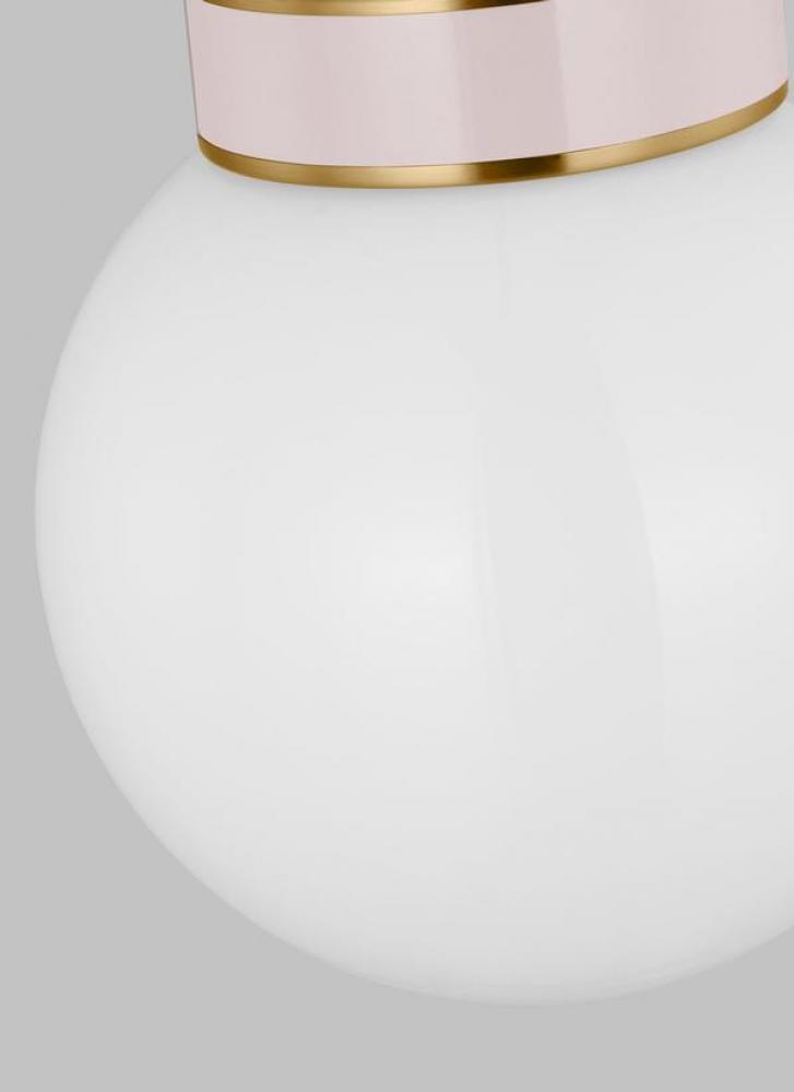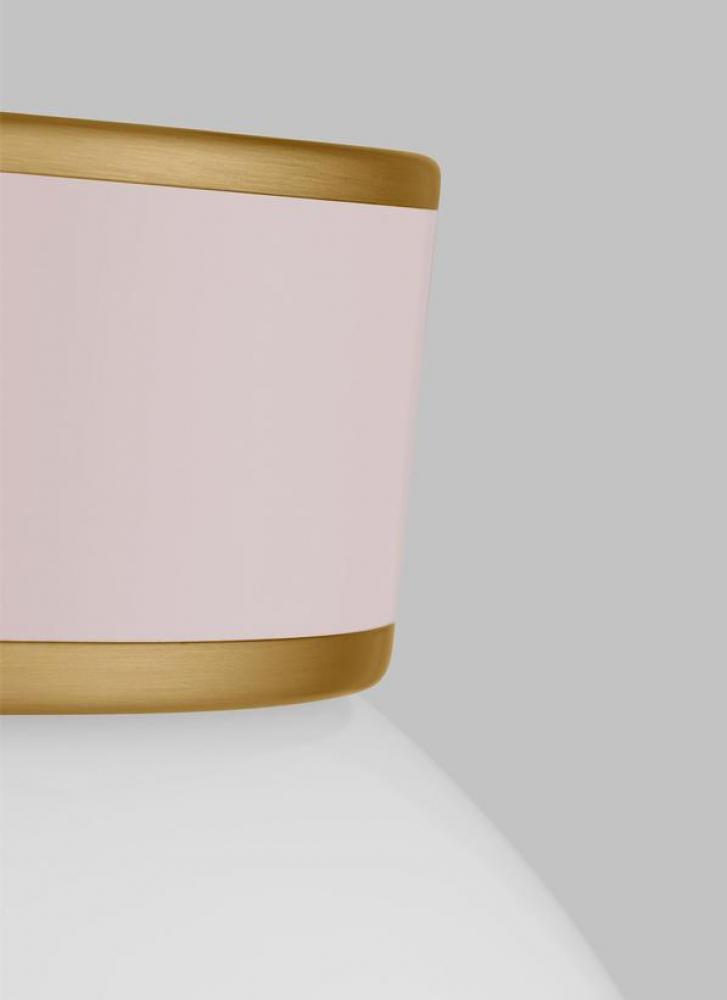 Inspired by graphic enameled metal jewelry and decorative accessories from Kate Spade with a nod to late 50s atomic era colorful designs. Monroe exhibits clean lighting profiles and dressed them up with painted sections and metal accents. With chic finishes and burnished brass accents, the Monroe Flush Mount is a precise picture of refined minimalist design with a modern twist. Ideal for a bedroom, living room, den, or playroom, this flush mount adds the perfect pop of color while illuminating your home with style.