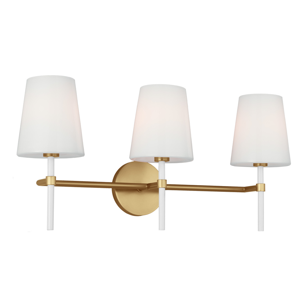 The Monroe three light vanity is inspired by graphic enameled metal jewelry and decorative accessories from kate spade with a nod to late 50s atomic era colorful designs. Monroe exhibits clean lighting profiles and dressed them up with painted sections and metal accents.
