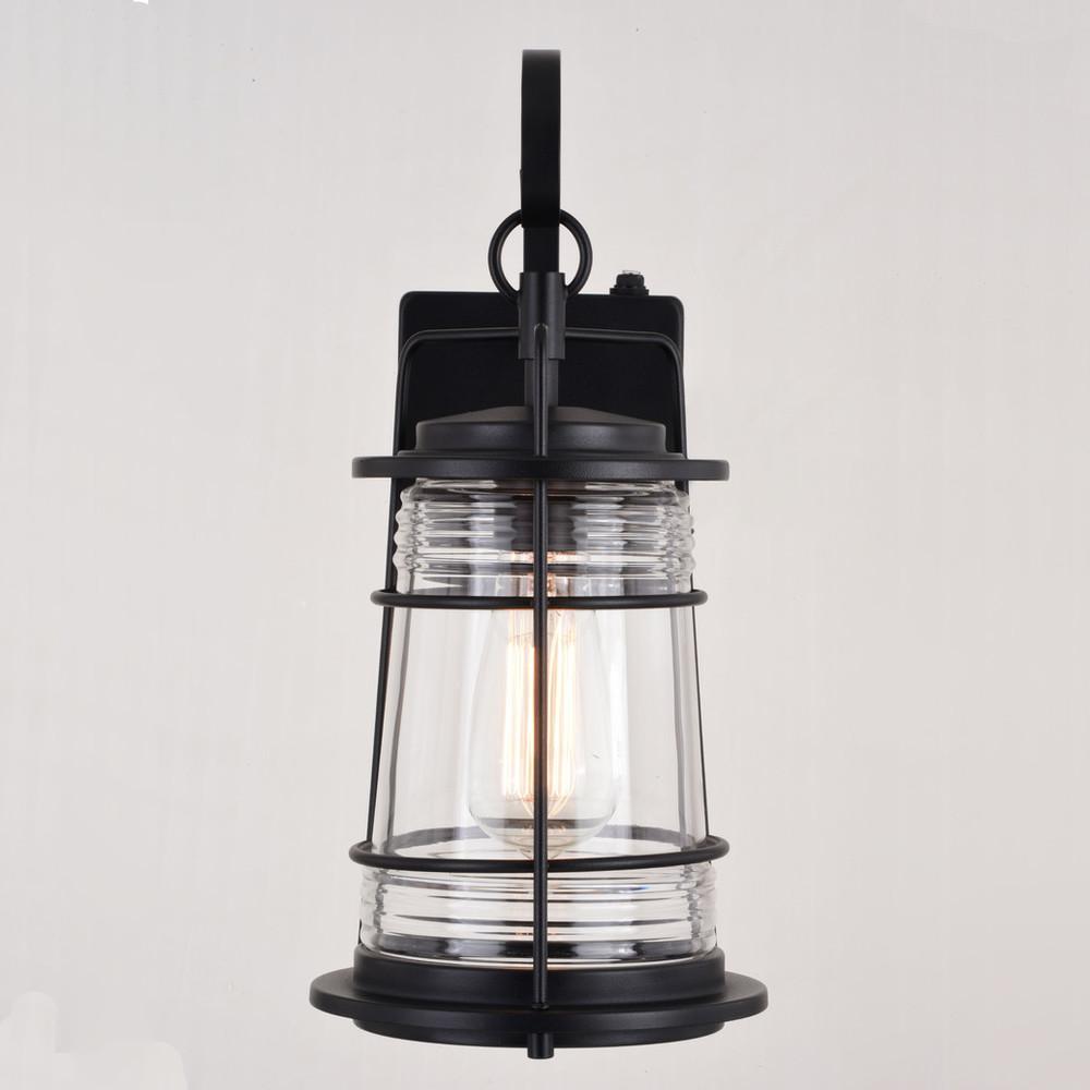 Black Cage Clear Coastal Dimmable Down Driveway Dusk to Dawn Energy Efficient Saving Entrance Entryway Exterior Fixture Front Door Garage Glass Industrial Lamp Lantern LED Compatible Lighting Mount Nautical Outdoor