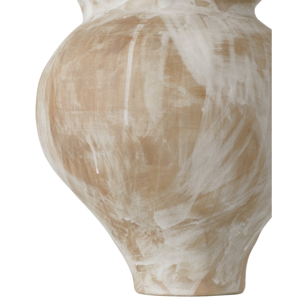 Dripping with personality, the Monte Carlo Vase Set is made of porcelain that has been hand-painted in a mix of antique white and light brown glazing. The brushstrokes of the artisans who glazed the pair of tan vases are apparent. This and the organic shape of the large mouth created when it is hand-thrown on a wheel give it a gallery-worthy feel.
