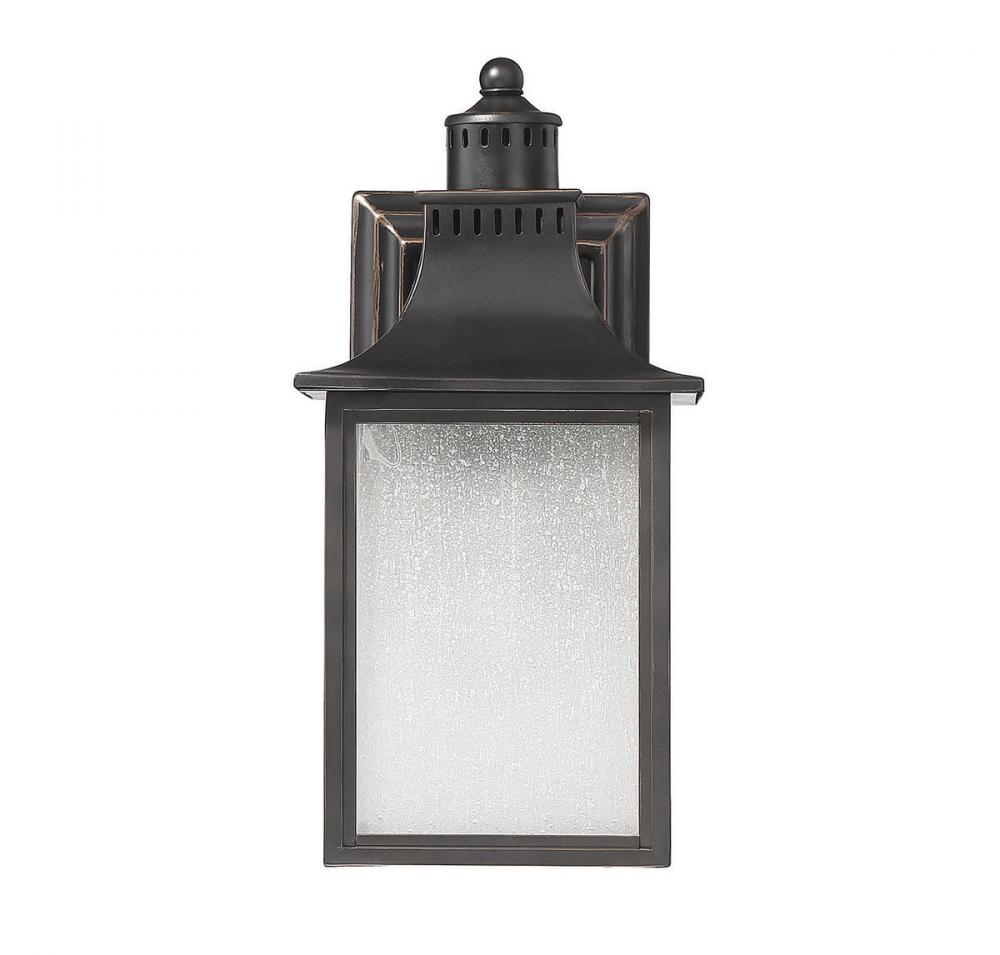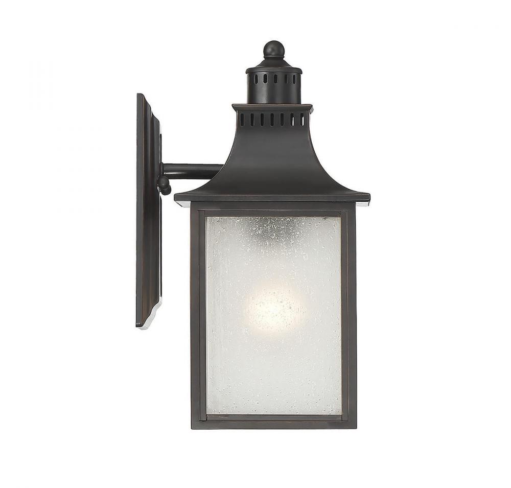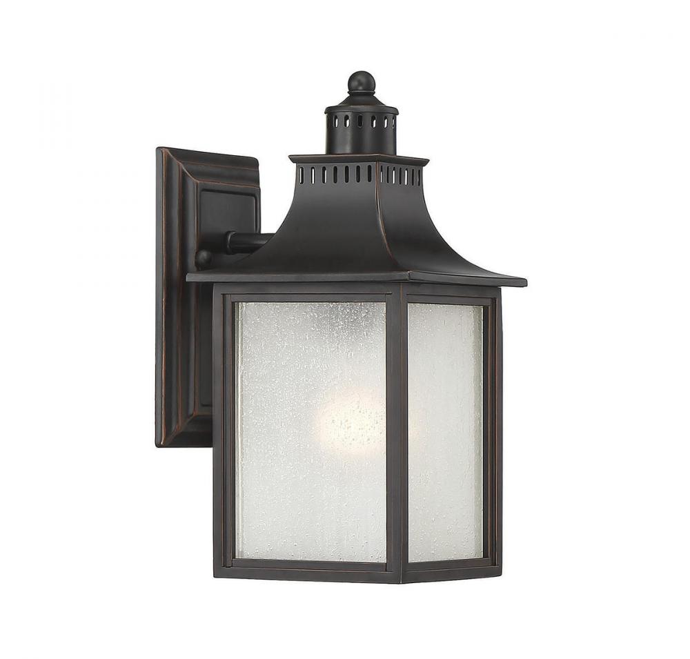 The Savoy House Monte Grande 1-light outdoor wall lantern is an elegant, clean-lined version of a classic, box-shaped lantern. It’s a timeless and pleasing style from designer Karyl Pierce Paxton, a wall lantern that will illuminate the exterior of your home and welcome you and your guests with a familiar, traditional aesthetic. The slate black finish is a wonderful neutral that goes with other hardware and architectural materials. The panels are made of beautiful pale cream seeded glass. One 40W standard size bulb provides plenty of soft light. This lantern is 5.5" wide, 11.5" high and UL rated for wet locations, so it's perfect for classic style on the outdoor walls of your porch, patio, sunroom, pergola and other outdoor living areas.