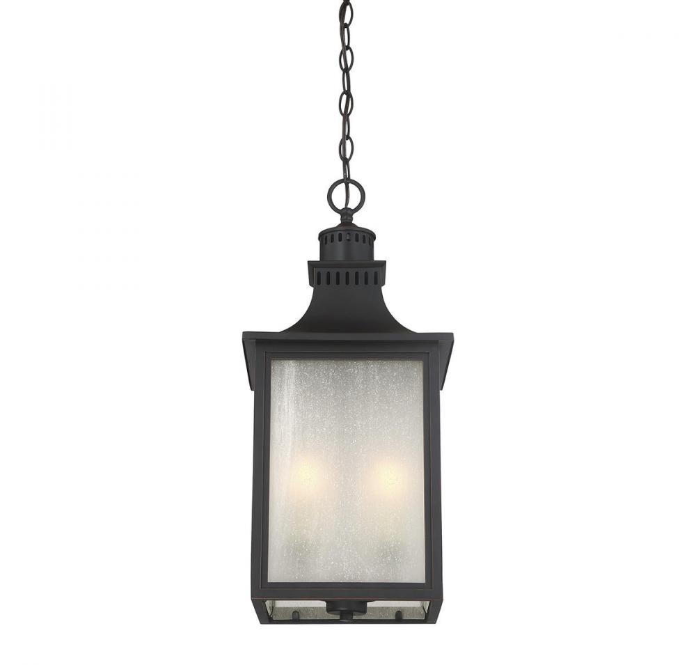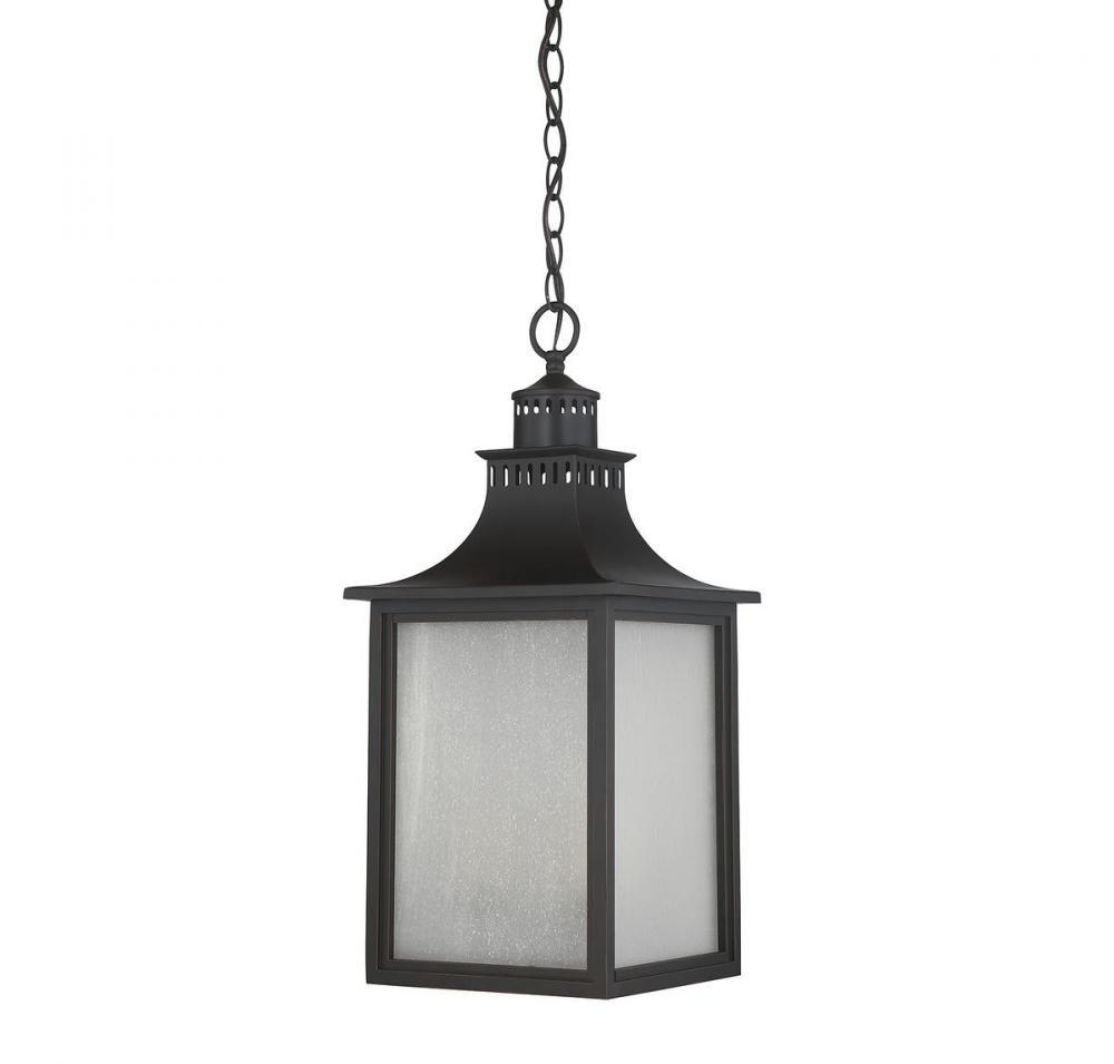 The Savoy House Monte Grande 3-light outdoor hanging lantern is an elegant, clean-lined version of a classic box-shaped lantern. It’s a timeless and pleasing style from designer Karyl Pierce Paxton, a wall lantern that will illuminate the exterior of your home and welcome you and your guests with a familiar, traditional aesthetic. The English bronze finish is a wonderful neutral and the panels are made of beautiful pale cream seeded glass. Three 40W candelabra size bulbs provide plenty of soft light. This lantern is 10" wide, 23.75" high and UL rated for damp locations.