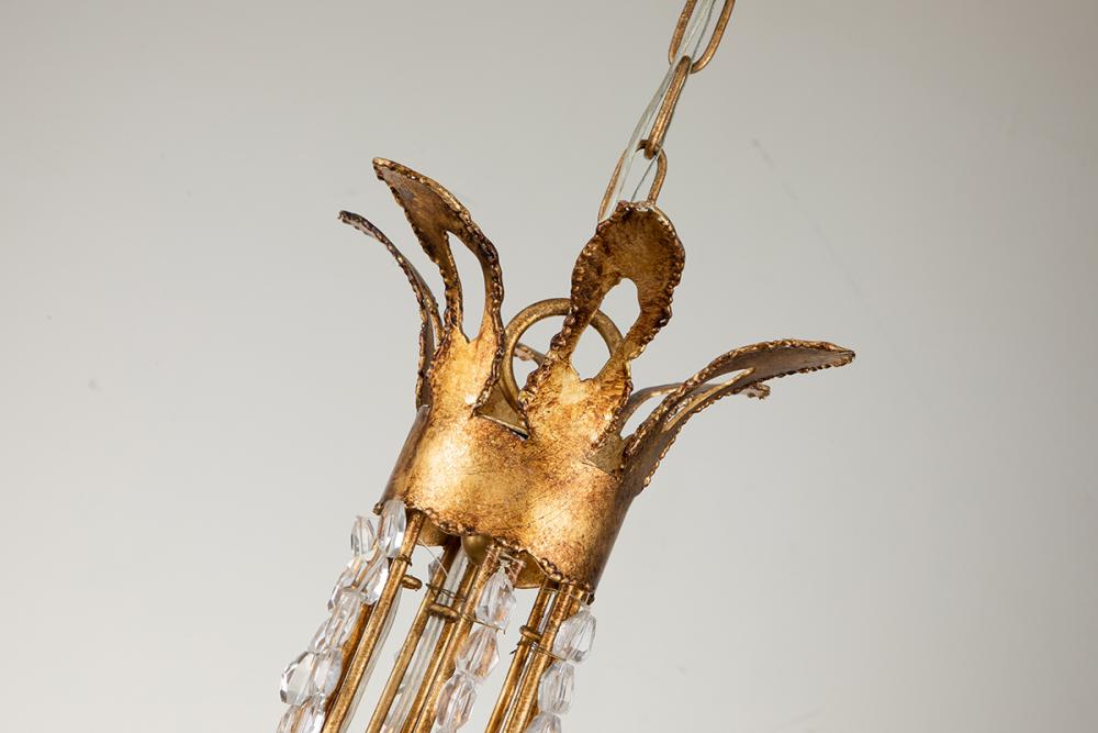 A 3-light mini chandelier in antique gold with hand-molded shapes and weathered gold bobeches. Its Old World style adds eclectic charm to dining or entryways.