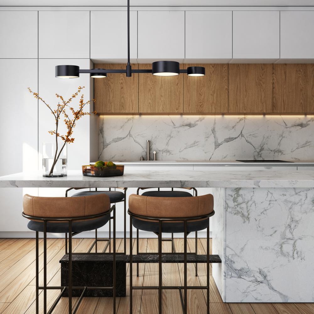 MONTGOMERY, LPL315A04BK, MBK Color, 4 Lt LED Rod Pendant, Acrylic, 43W LED (Integrated), Dimmable, 3000K 2200Lumens, 4000K 2300Lumens, 5000K 2200Lumens 3CCT Switch, 34inch W x 6.75 - 54.75inch H x 11inch D