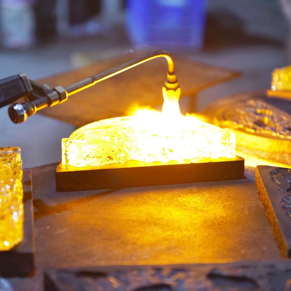 One-of-a-Kind Craftsmanship Features crescent-shaped panels made from individually handcrafted, textured glass for a unique, artistic statement.