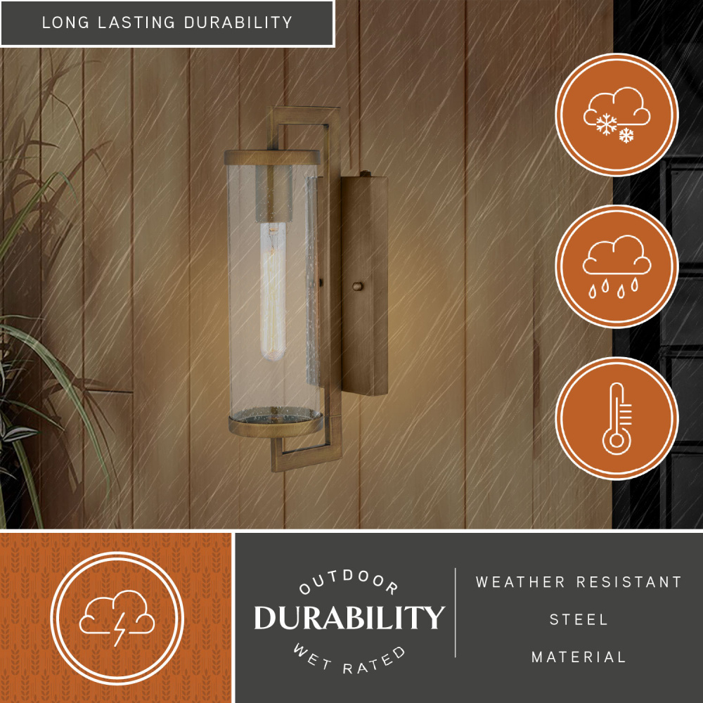 Wall, Light, Outdoor, Sconce, Glass, LED, Shade, Clear, With, In, Brass, Modern, Exterior, Steel, Porch, Seeded, Dusk, Dawn, To, H, Garage, E
