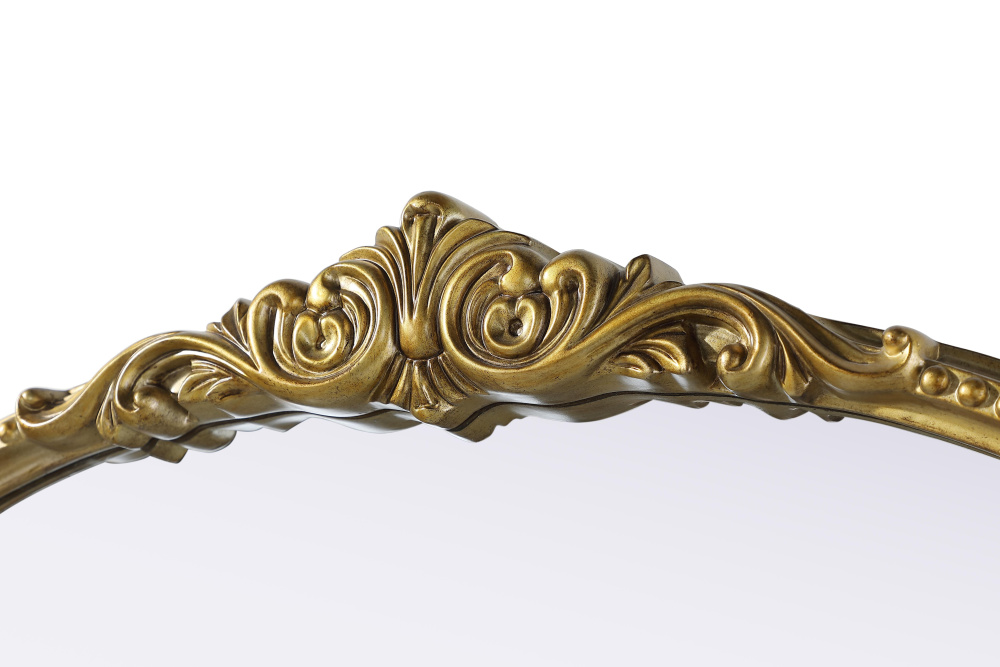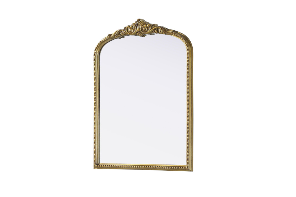 Add a touch of old-world charm to your home with this antique brass arched wall mirror, designed to bring timeless elegance and vintage character to any space. The hand-painted distressed finish gives the frame an aged, classic appeal, while the ornate crest and intricate detailing add a traditional European touch. Crafted from resin with an MDF backing board, this mirror is both lightweight and durable. Designed for vertical hanging only, it features a single metal inset hanger for easy wall mounting (hardware not included). Whether placed above a fireplace mantel, in an entryway, or as an accent piece in a living room, this mirror creates a refined focal point. Available in multiple sizes and an alternative vintage bronze finish, it complements a variety of interiors, from classic and French country to vintage-inspired spaces.