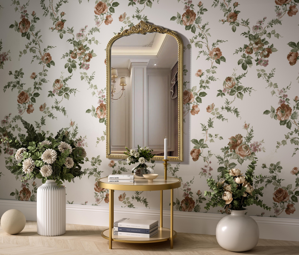 The mirror features a softly curved arch at the top, adding a refined and timeless touch to any space.