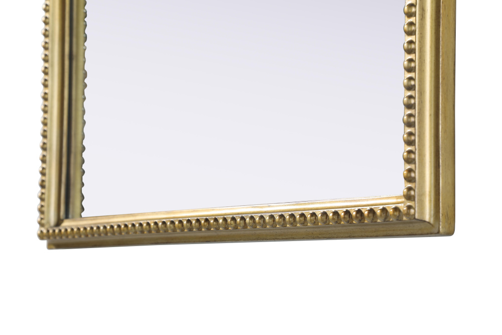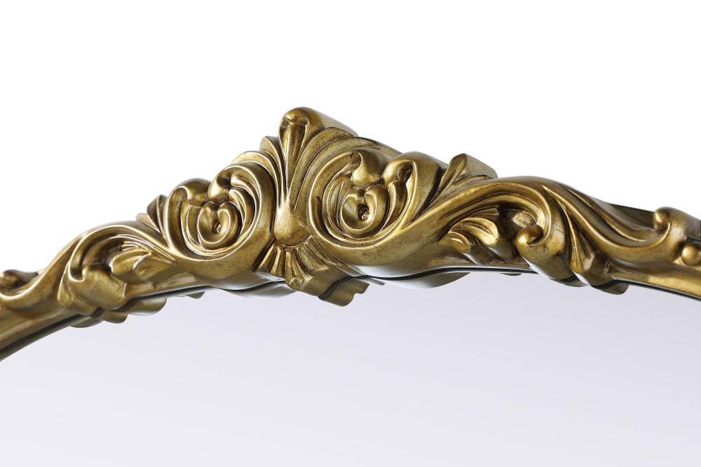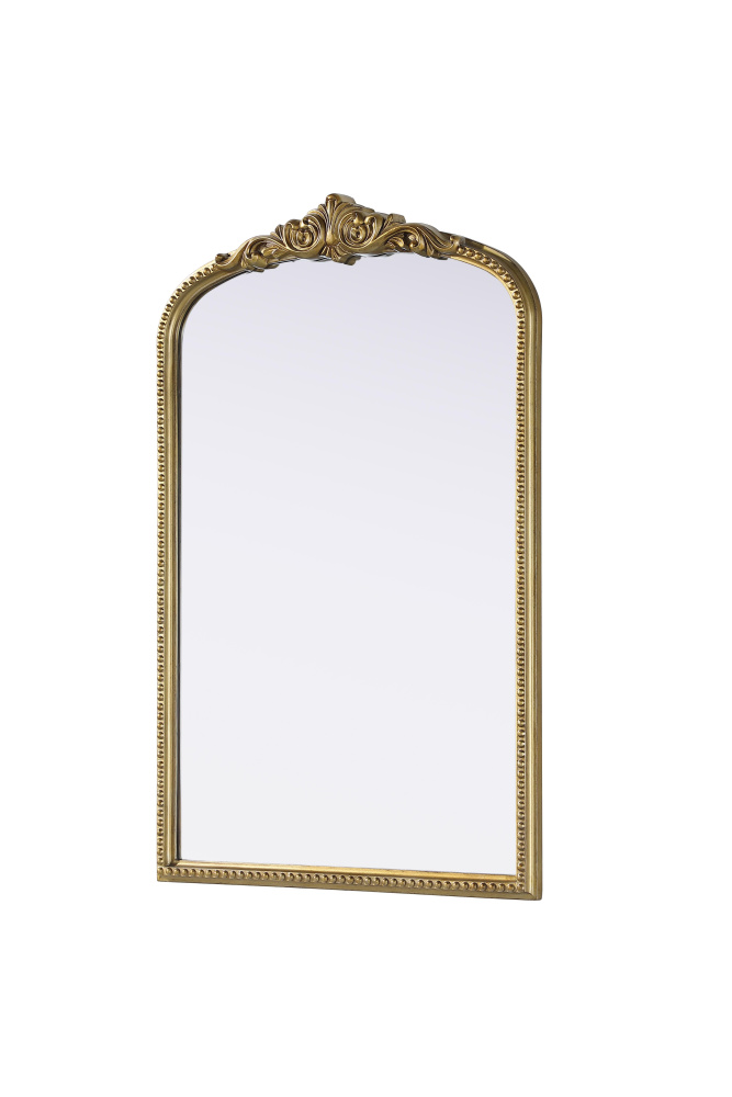 Add a touch of old-world charm to your home with this antique brass arched wall mirror, designed to bring timeless elegance and vintage character to any space. The hand-painted distressed finish gives the frame an aged, classic appeal, while the ornate crest and intricate detailing add a traditional European touch. Crafted from resin with an MDF backing board, this mirror is both lightweight and durable. Designed for vertical hanging only, it features a single metal inset hanger for easy wall mounting (hardware not included). Whether placed above a fireplace mantel, in an entryway, or as an accent piece in a living room, this mirror creates a refined focal point. Available in multiple sizes and an alternative vintage bronze finish, it complements a variety of interiors, from classic and French country to vintage-inspired spaces.