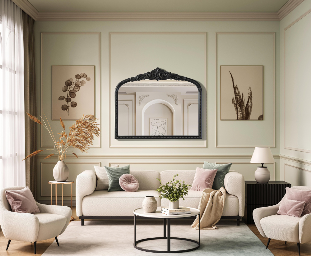 The sculpted crest with scrolling accents at the top enhances its traditional and French-inspired design.