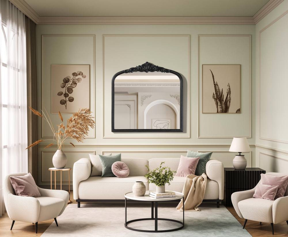 The sculpted crest with scrolling accents at the top enhances its traditional and French-inspired design.