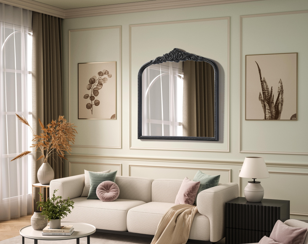 The mirror features a softly curved arch at the top, adding a refined and timeless touch to any space.