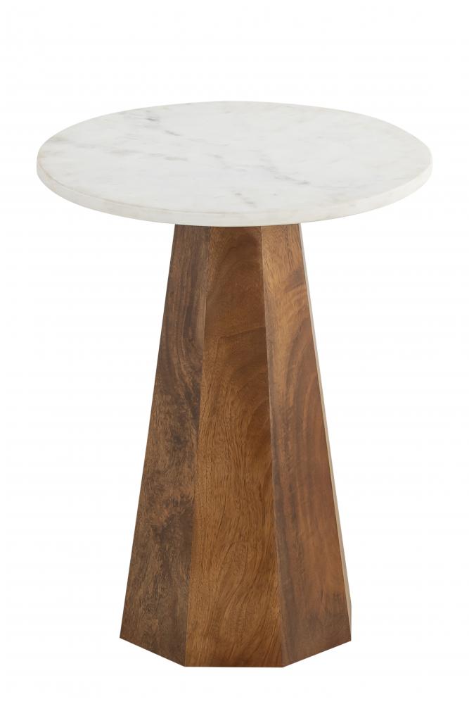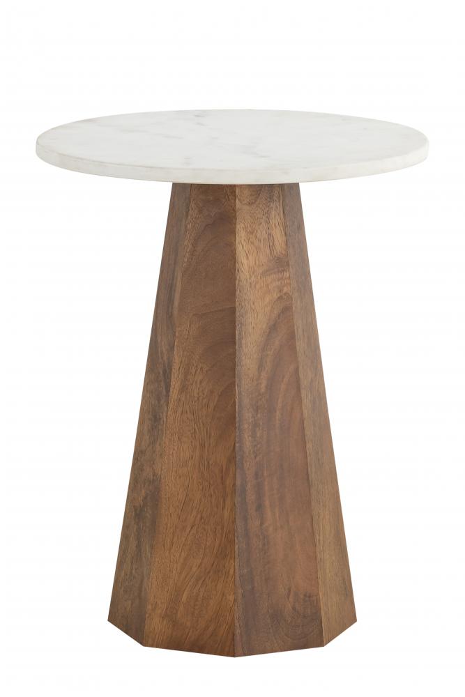 Introducing the NAYA Natural Wood Side Table, a perfect blend of rustic charm and modern elegance. This side table features a beautifully crafted natural wood base that showcases the rich grain patterns and textures, providing a warm and inviting feel to your home. The sturdy base is complemented by a smooth, white marble top, offering a sophisticated contrast and creating a stunning visual appeal.The NAYA side table is designed for both style and functionality. Its compact size makes it an ideal addition to various spaces, such as living rooms, bedrooms, or cozy corners, offering a versatile surface for displaying decor items, holding beverages, or keeping essentials within easy reach. The natural wood and marble combination not only ensures durability but also adds a touch of luxury to any interior setting.With its refined aesthetic and high-quality craftsmanship, the NAYA Natural Wood Side Table seamlessly integrates into various decor styles, from rustic and farmhouse to modern and minimalist. Whether you use it as a statement piece or as a complementary addition to your furniture, this side table will enhance your home's ambiance with its elegant design and practical features.