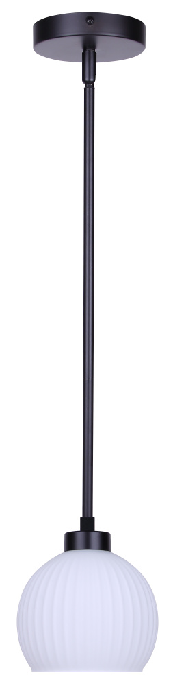 The NELLA 1-light rod pendant brings a sense of quiet luxury to contemporary interiors. Its matte black finish and softly ribbed flat opal glass shade create a look that is both refined and effortless. The glass diffuses light into a gentle, balanced glow, perfect for kitchens, dining areas, or hallways. Measuring 6 inches wide, this pendant offers a clean, modern silhouette that can be hung alone for subtle impact or grouped for a more dramatic effect. The adjustable rod allows installation from 15 to 57 inches in height, making it adaptable to any space. With its timeless materials and understated form, NELLA pairs everyday functionality with elevated simplicity.